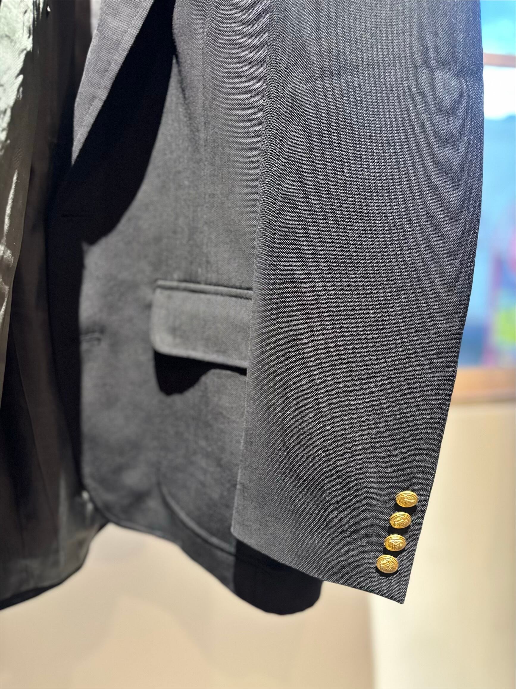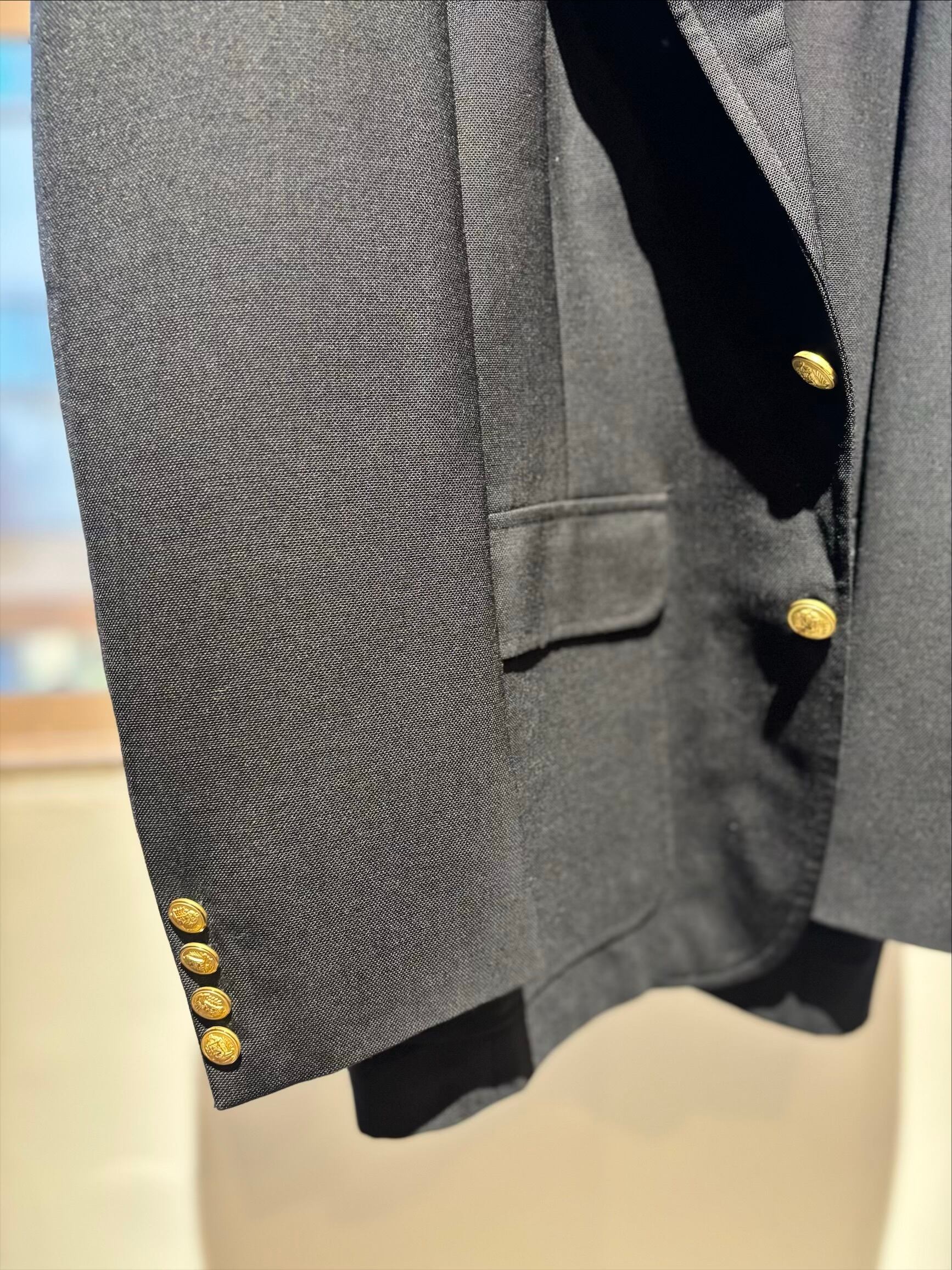 アメリカのテーラーが仕立てたものだと思いますが、クラシックでオーセンティックなブレザーの教科書のようなジャケット。珍しいブラックカラーです。