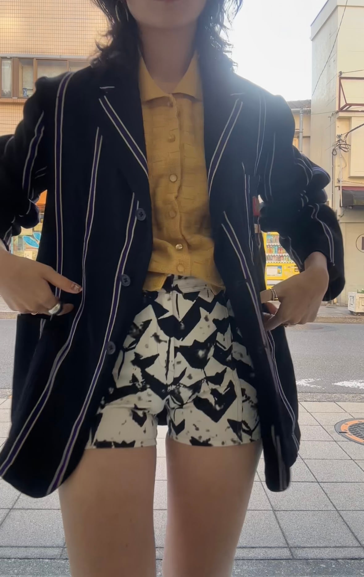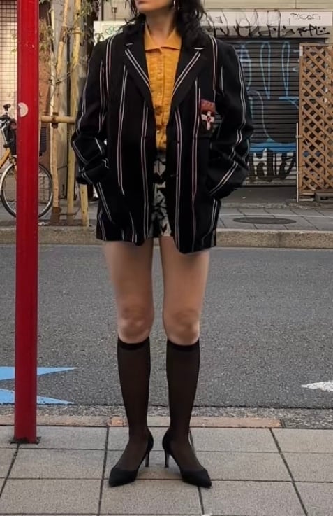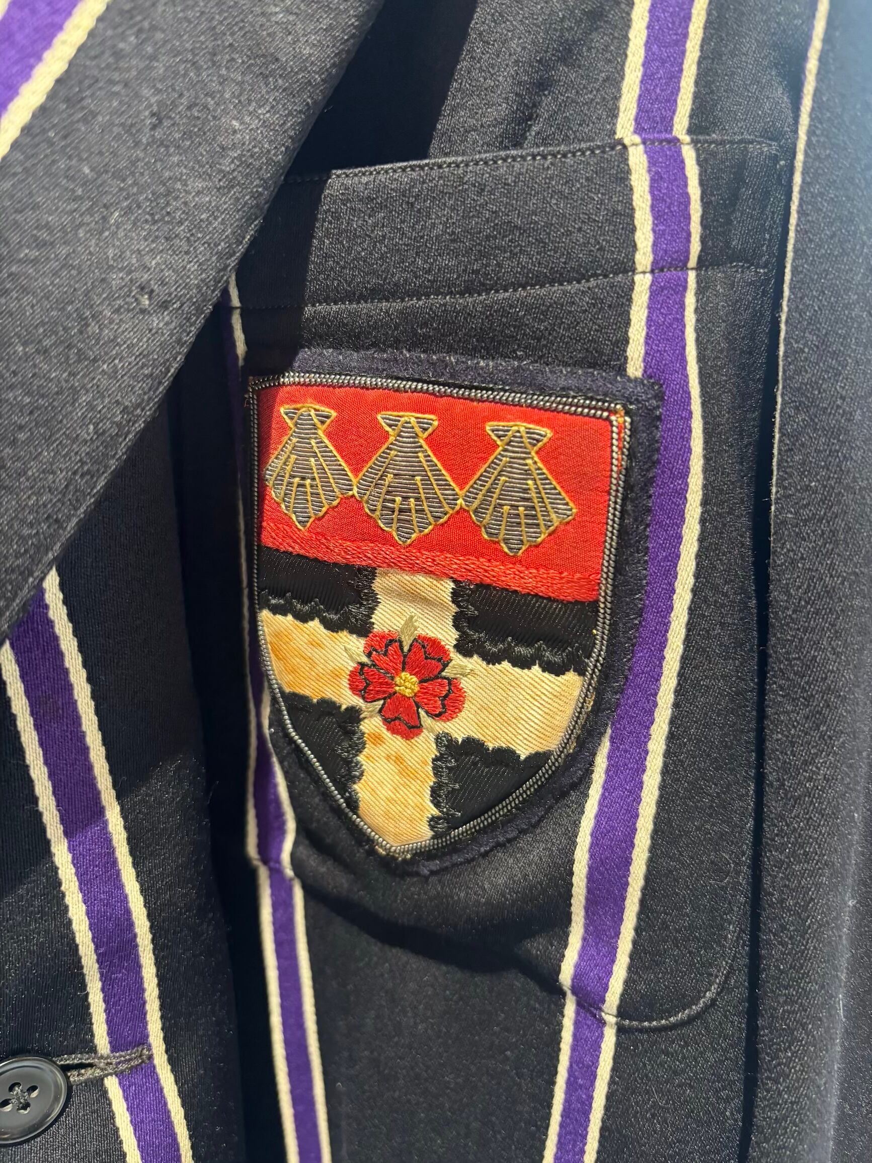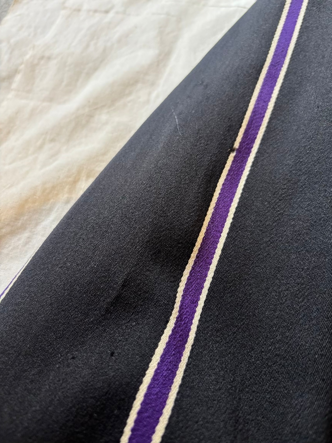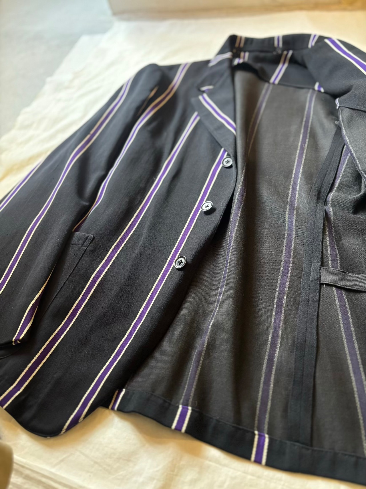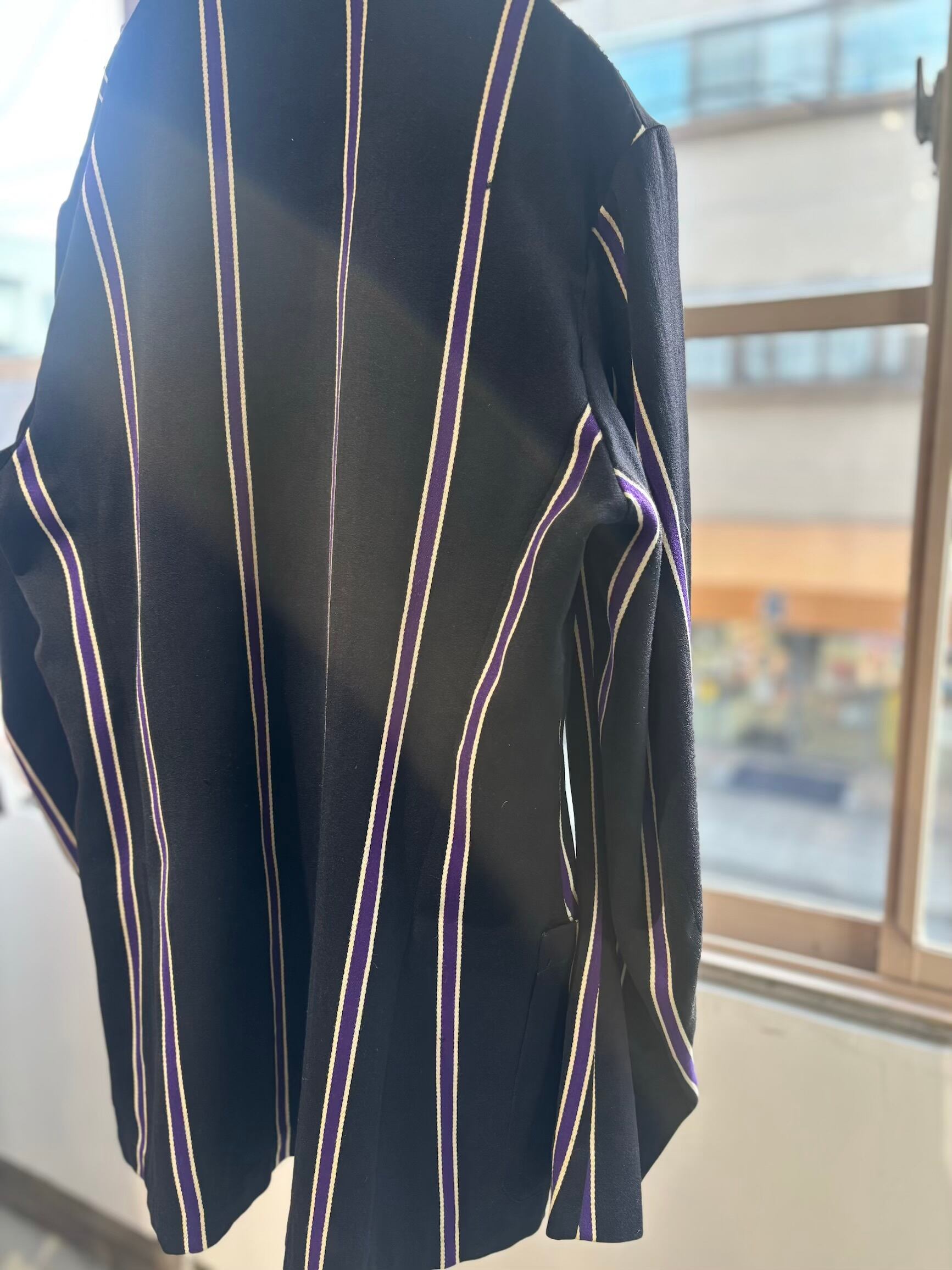 スクールジャケットとしてはとても珍しいブラックベースにパープルのストライプがとても良いです。古い年代だと小さなサイズのものが多いのですが、こちらは珍しく大きめサイズになります。栄養環境の違いと学生服という事で大きいサイズが出るのは稀だと思います。