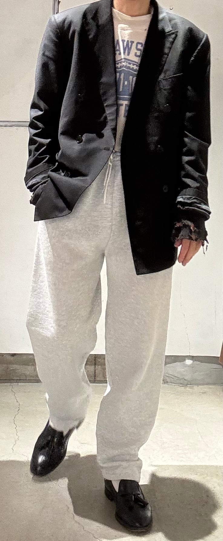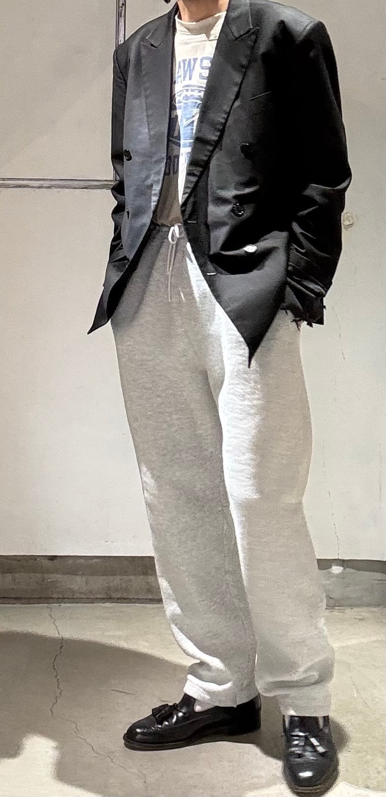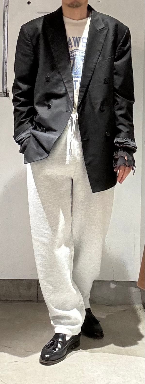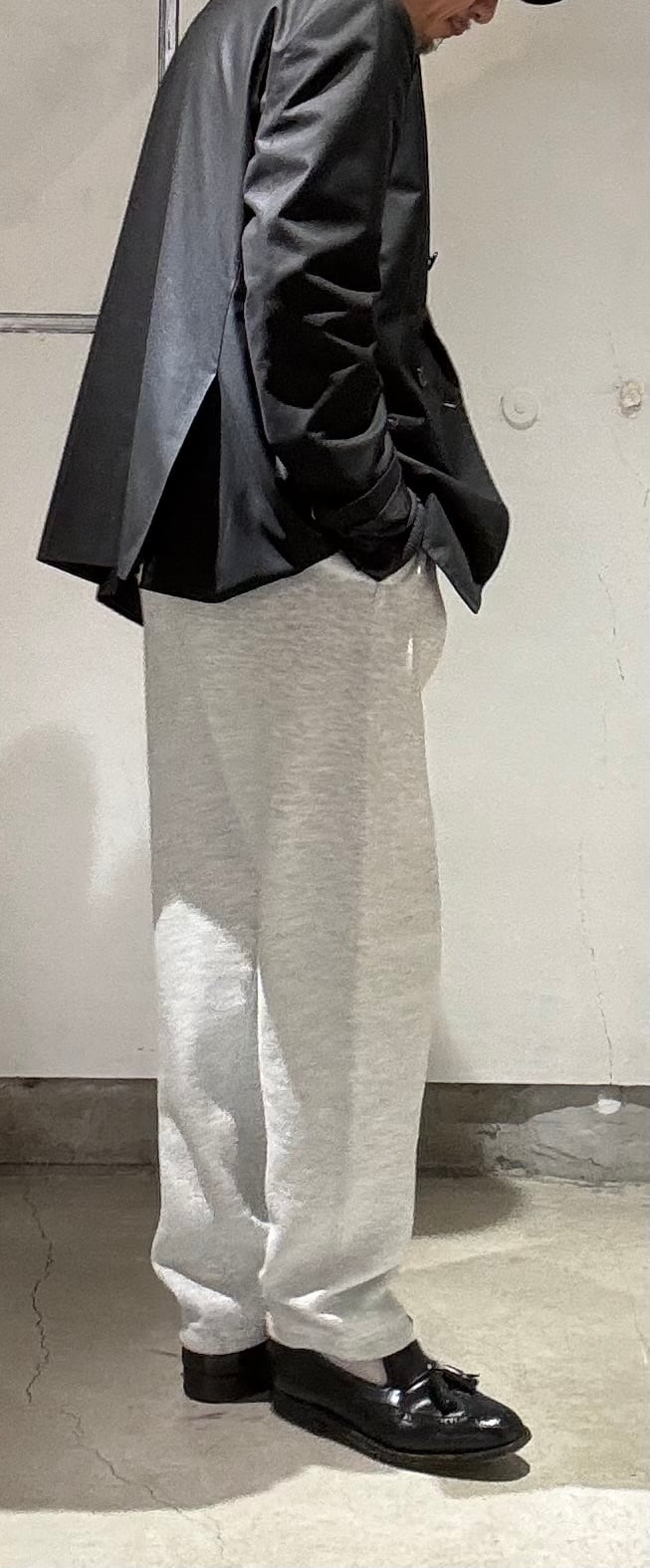 私もスウェットパンツ愛好家ですが、何も考えずシャツに合わせたりナイロンのアウターに合わせたり、時にはトレンチコートなどのロングコートに合わせたりと基本的に何にでも合うので使いやすくてとても便利なアイテムです。