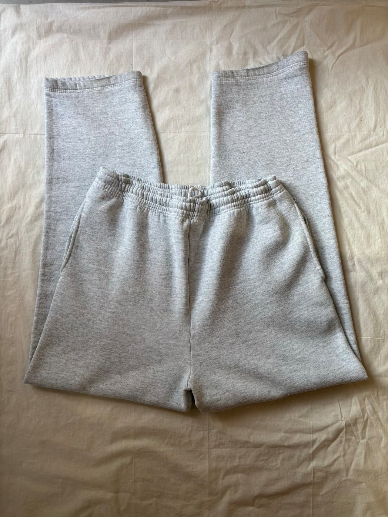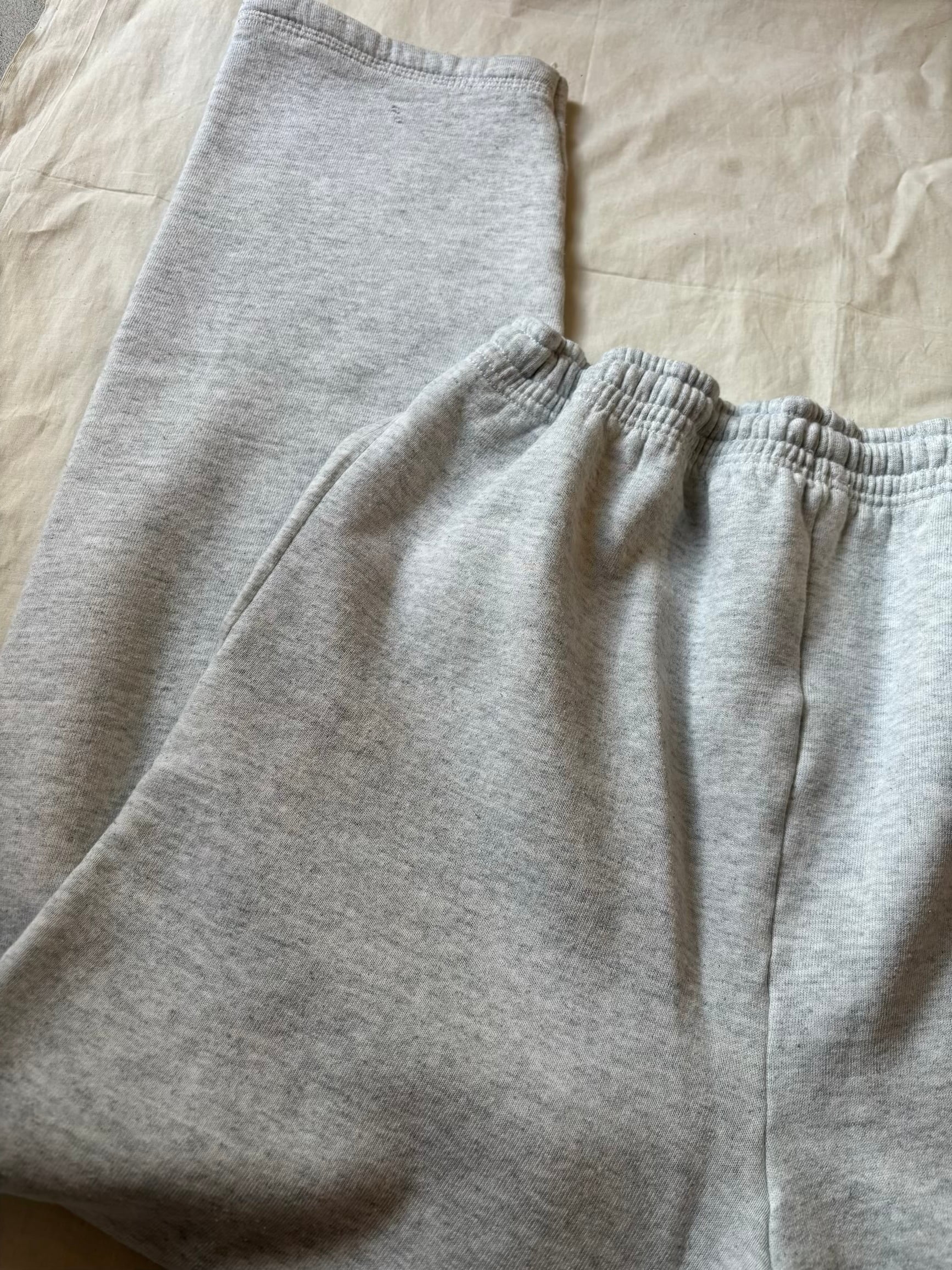 オーセンティックなスウェットパンツです。定番の杢グレーにポケット付き、裾もゴムなしのタイプでサイズはゴールデンサイズのL。一番需要のあるスウェットパンツだと思います。