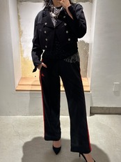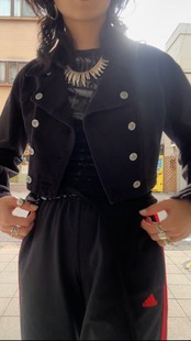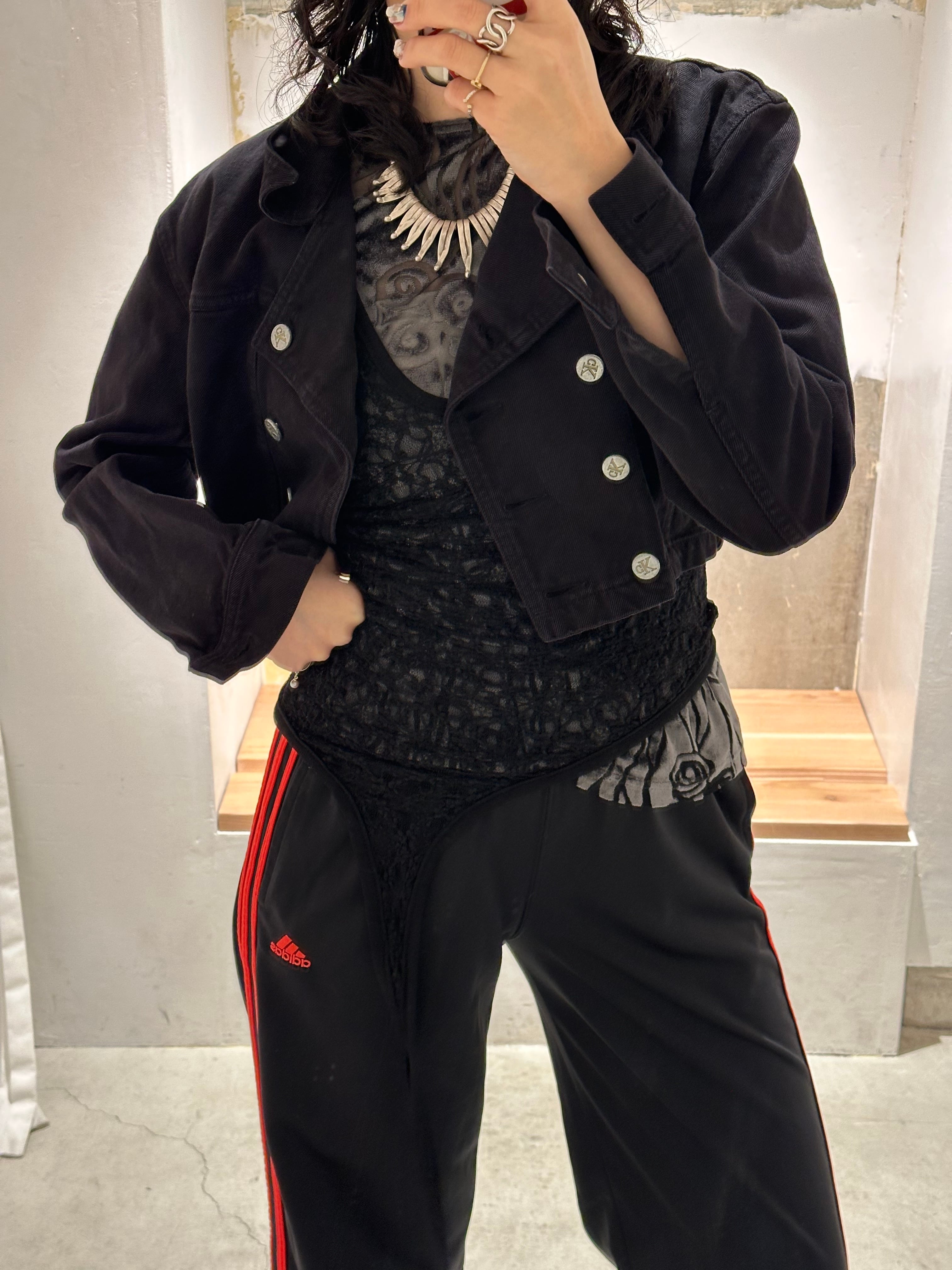 めちゃくちゃ可愛いですね。ダブルブレストのフロントデザインにCKマークのボタン、極端に短丈な着丈はオリジナルデザインです。