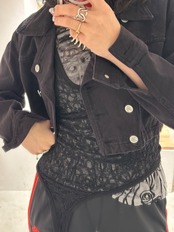 ここまで短丈なのでメリハリのあるstylingが可愛いと思いますのでstylingで使っている様なボディスーツを出したり、ランジェリードレスで合わせたりしてもらえるととても可愛いと思います。