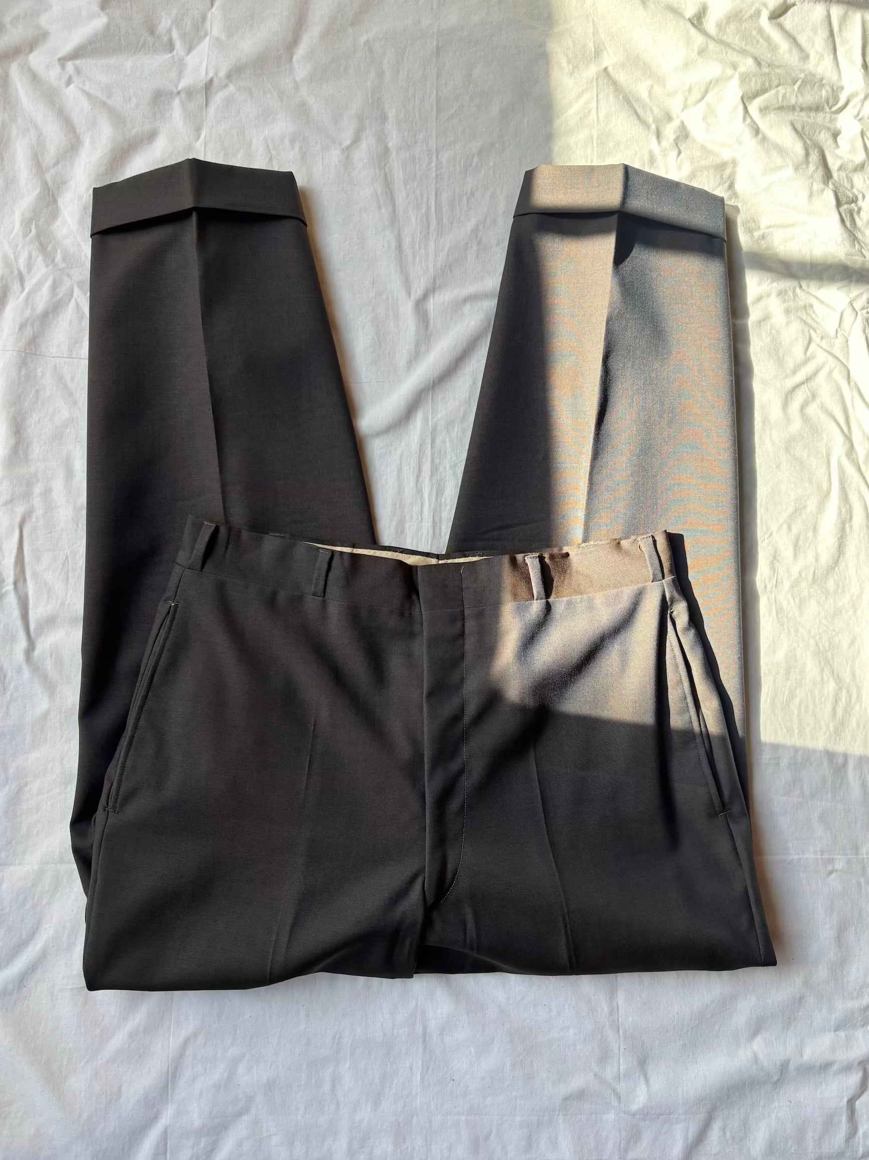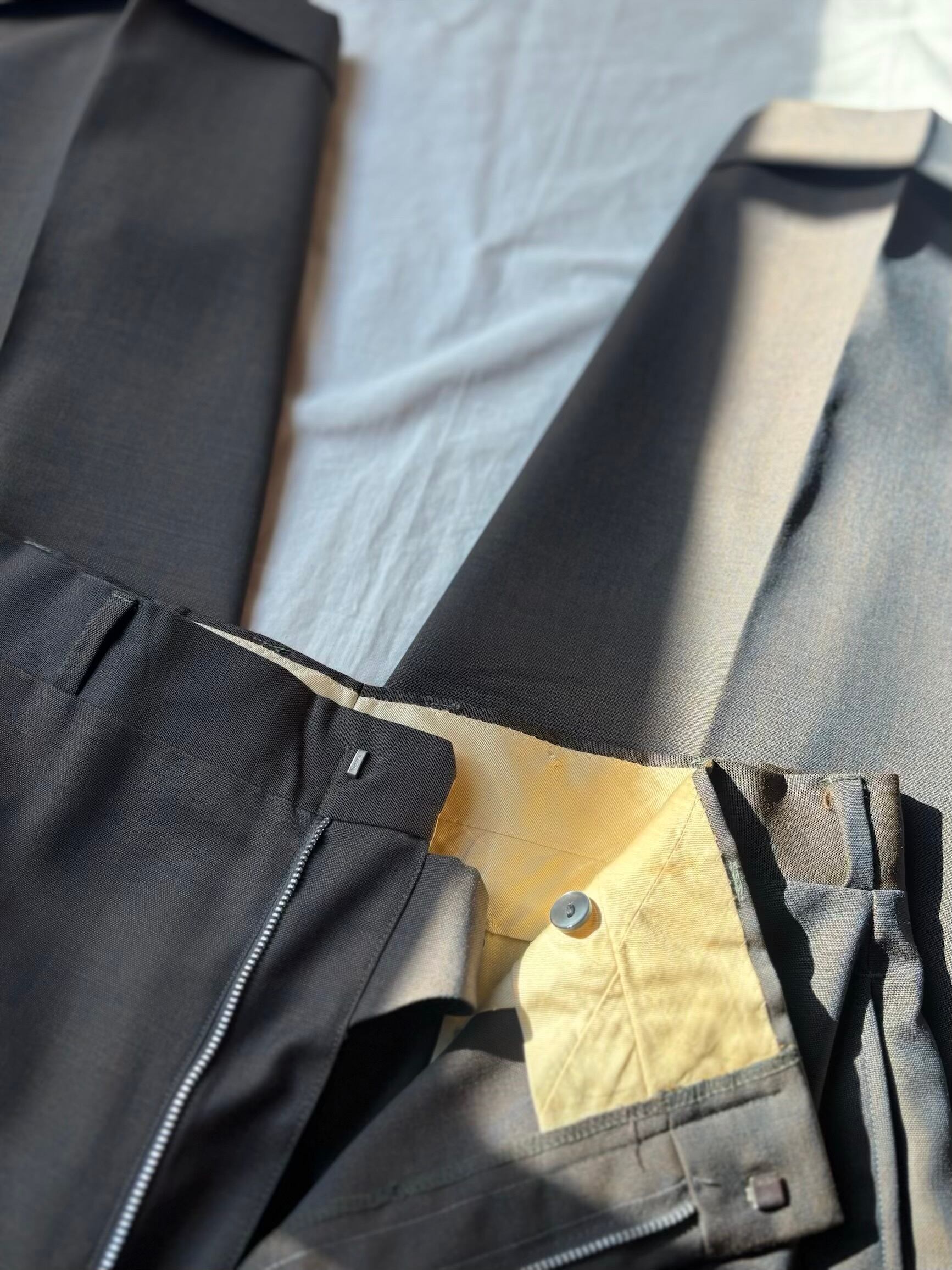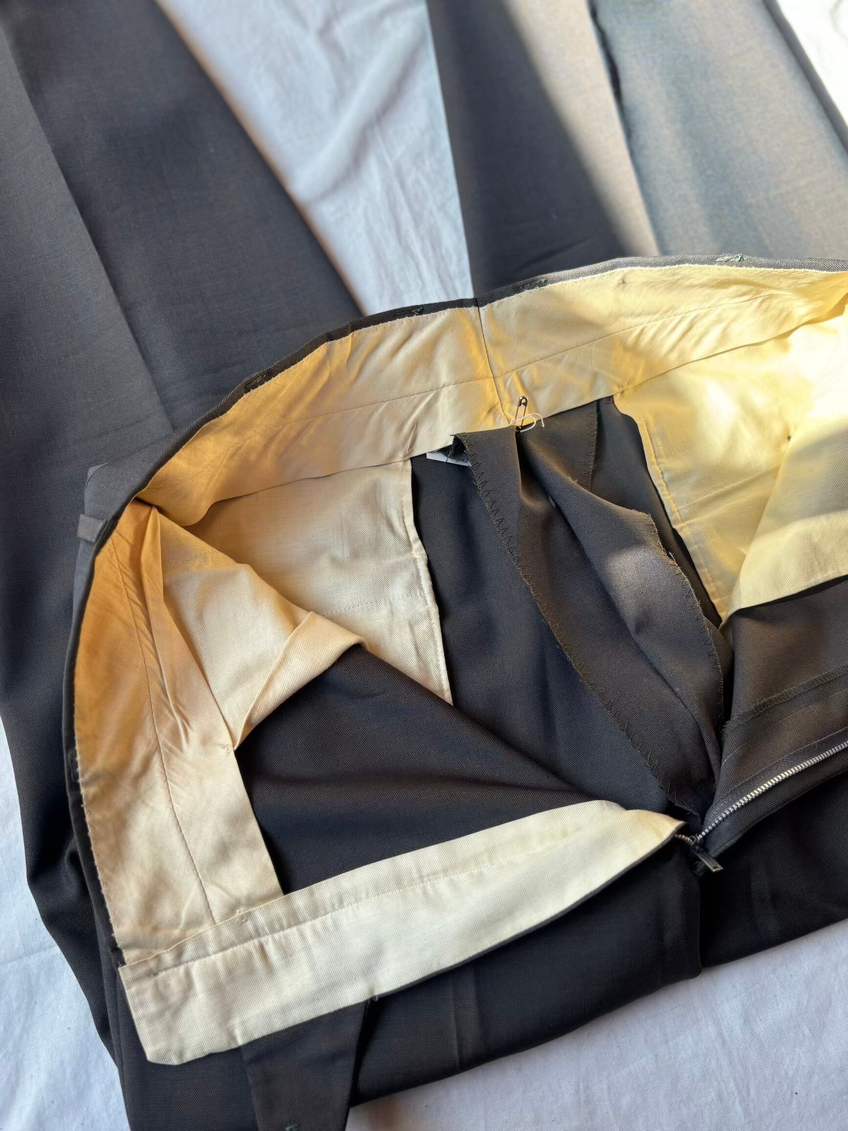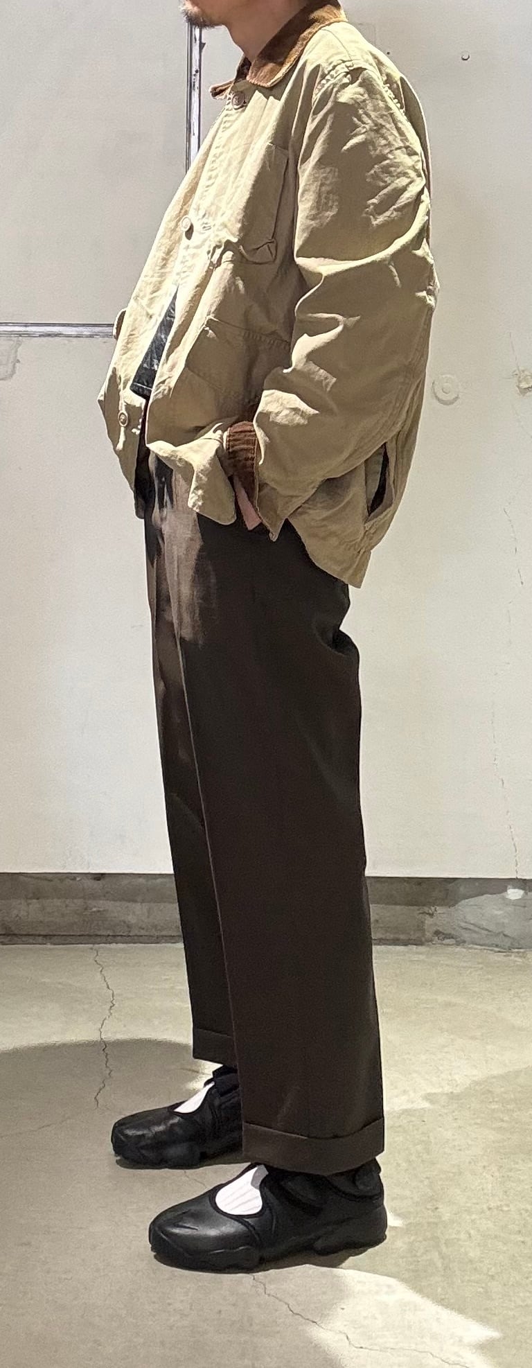 数年比較的長く続いたタックのトラウザーズ、そのワイドシルエットが人気でしたが個人的にもう飽きてしまったので、オーセンティックでクラシックなシルエットのトラウザーズをお店で集めています。その一つのトラウザーズでここまで古いものは勿論なかなか入荷は少ないです。