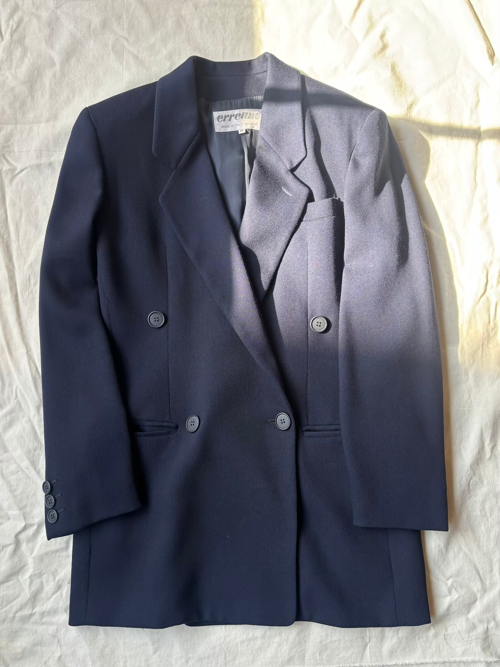 80's summer wool classic double breasted jacket made in italy navy