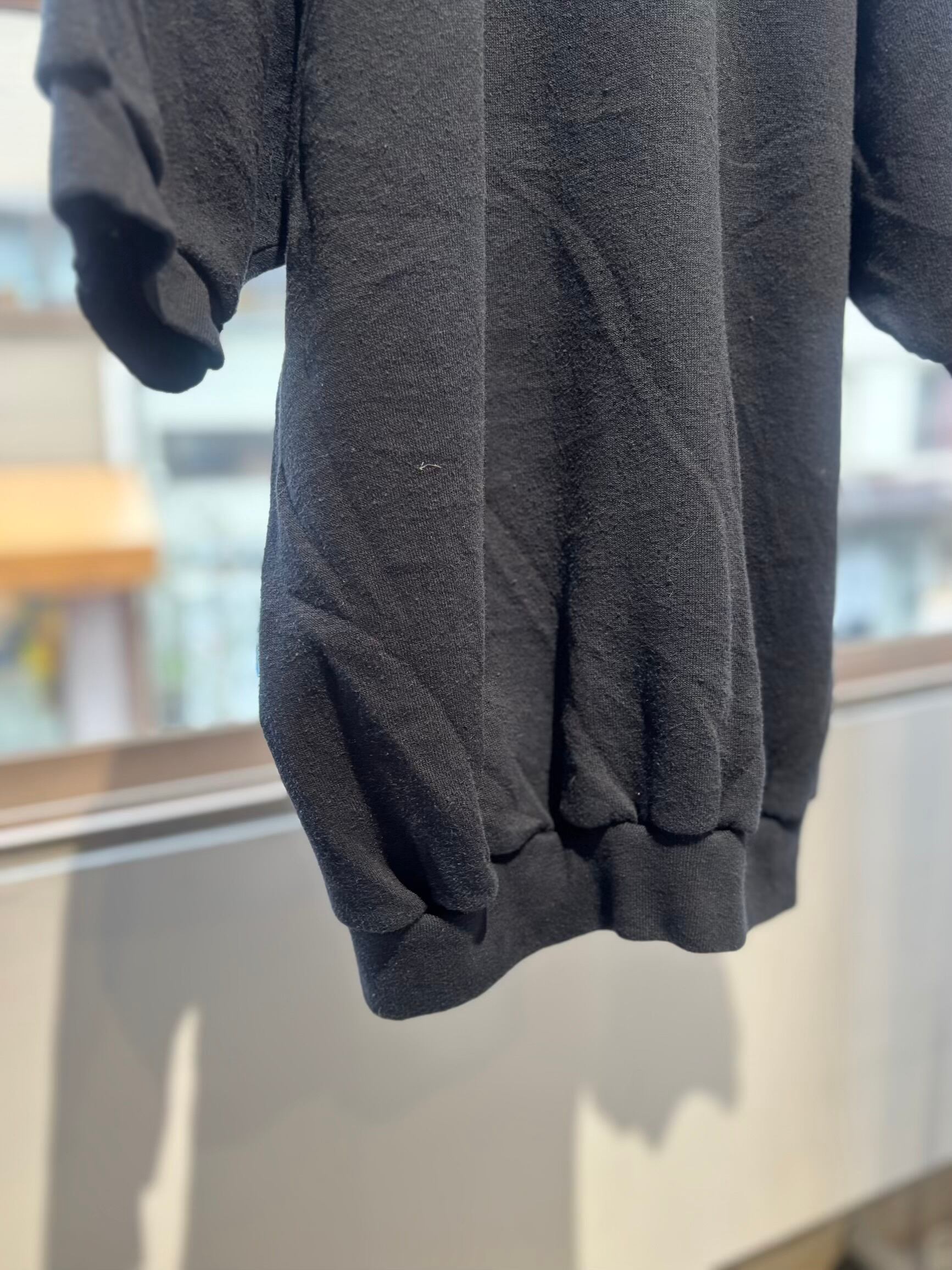 無地の黒ボディに身幅広め、着丈短めの半袖でスウェットもう見つからなくなってきましたね。元々半袖スウェット自体が着る季節が迷うアイテムで当時の生産数もかなり少なかったと思うので、余計見かける事が少なくなってきたアイテムの一つです。