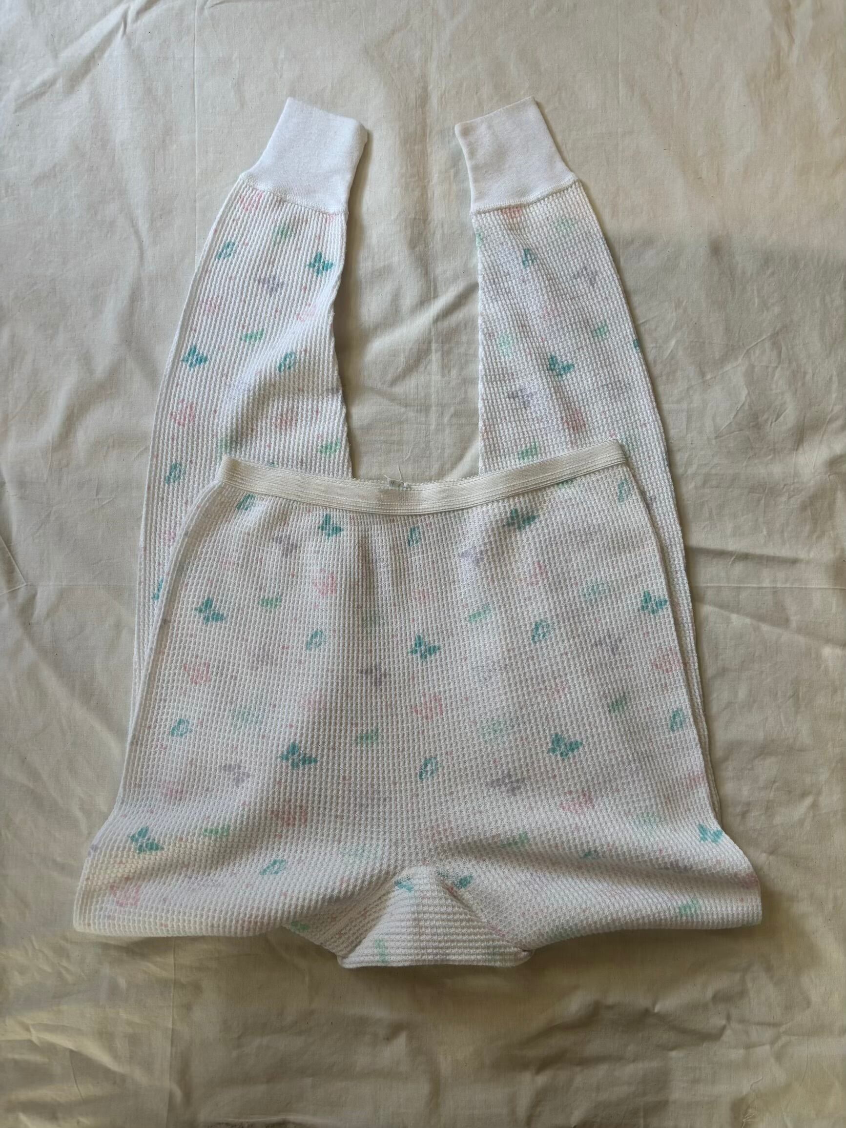 70's〜j.e.morgan's vinvage flower & butterfly pattern thermal tights size xl made in usa