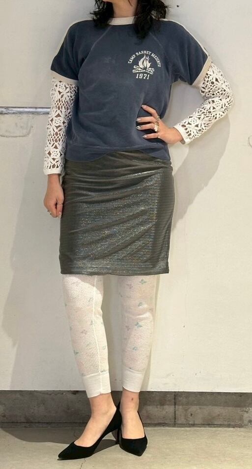 今丁度タイツもトレンドになっているので、人と被らないビンテージタイツを履くのもおすすめです。