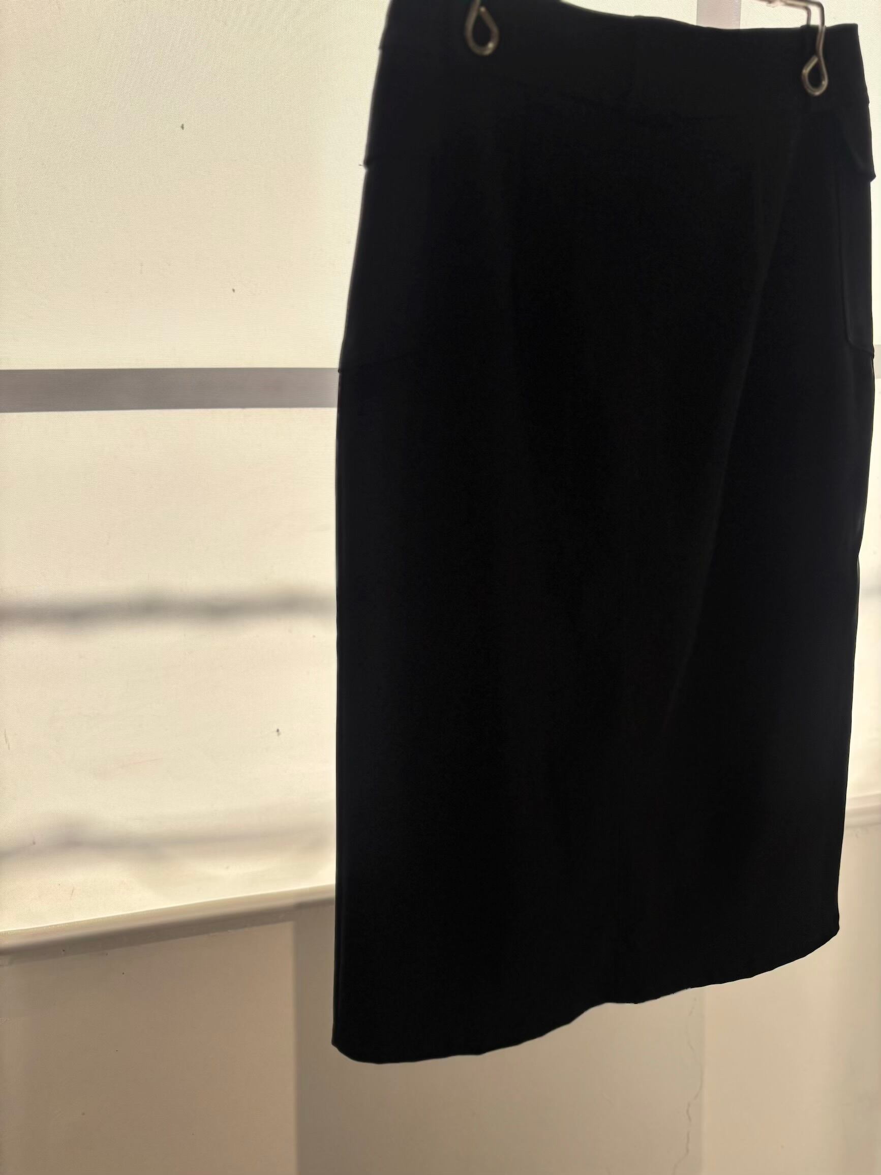 オフィスからカジュアルまで幅広く履けるスカートだと思います。モードな着こなしにもハマります。是非ご検討下さい。
