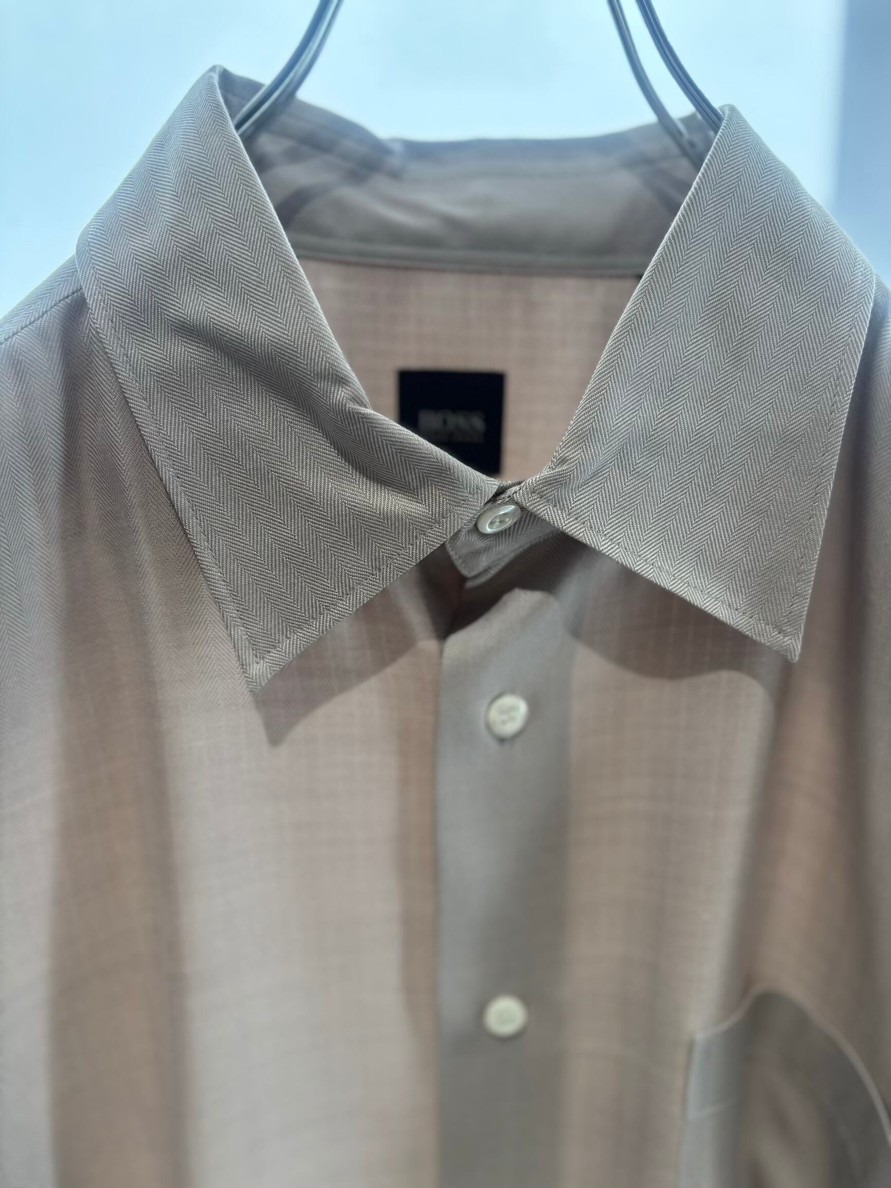 10's〜HUGO BOSS herringbone silk regular collar shirt XL