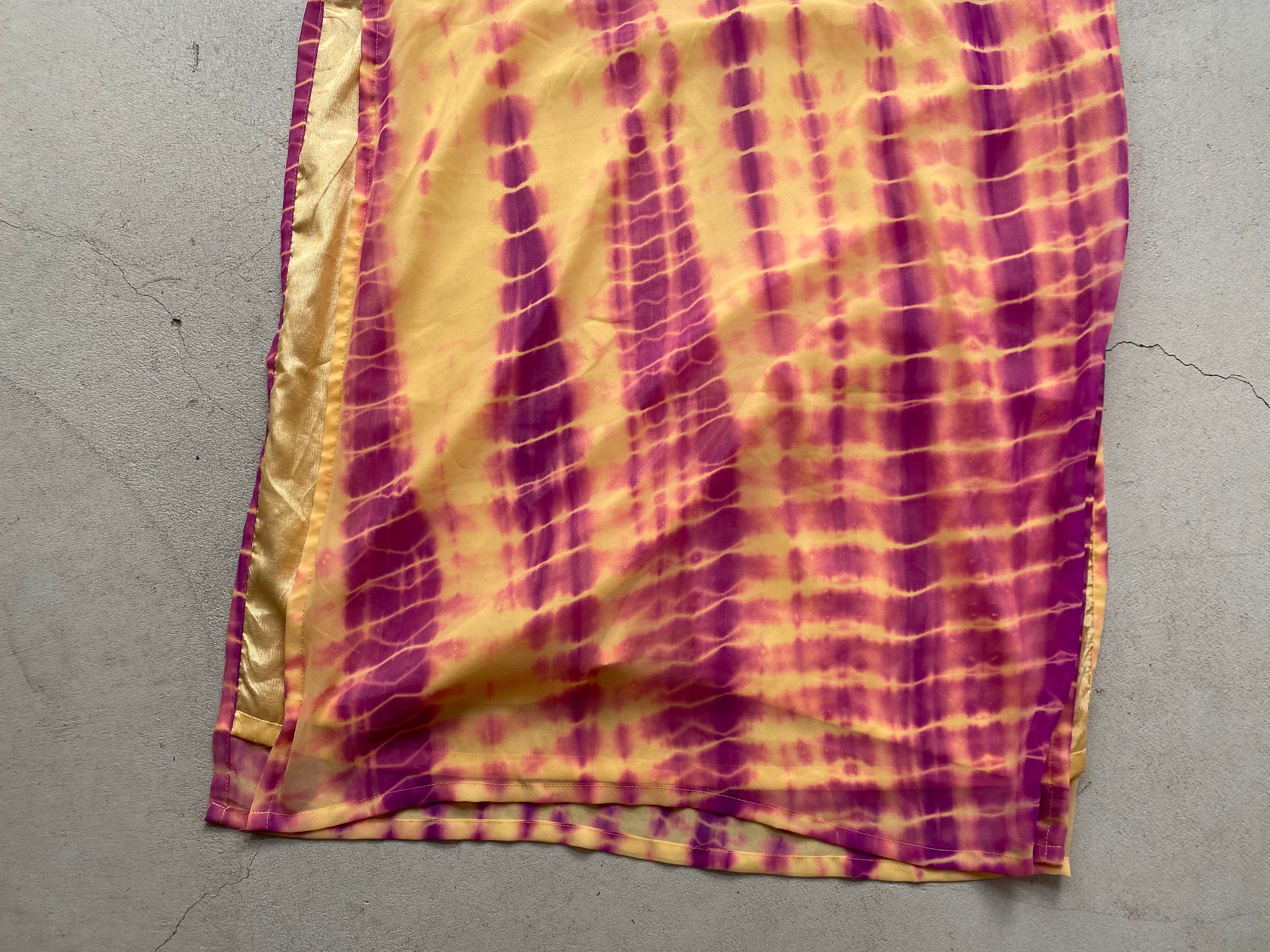 鮮やかなタイダイが綺麗で、かつ袖が透ける素材になっていてとてもお洒落なワンピースになります。
