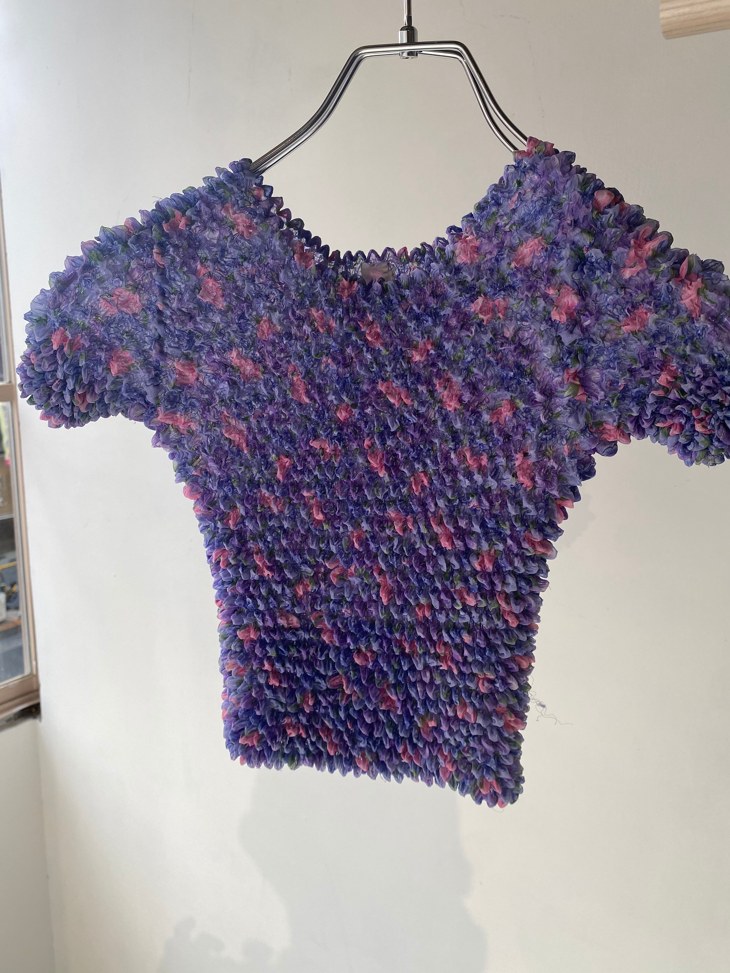 ポップコーントップスは90’sにアメリカで流行したアイテムで、表面にポコポコした凹凸があるのが特徴のトップスです。