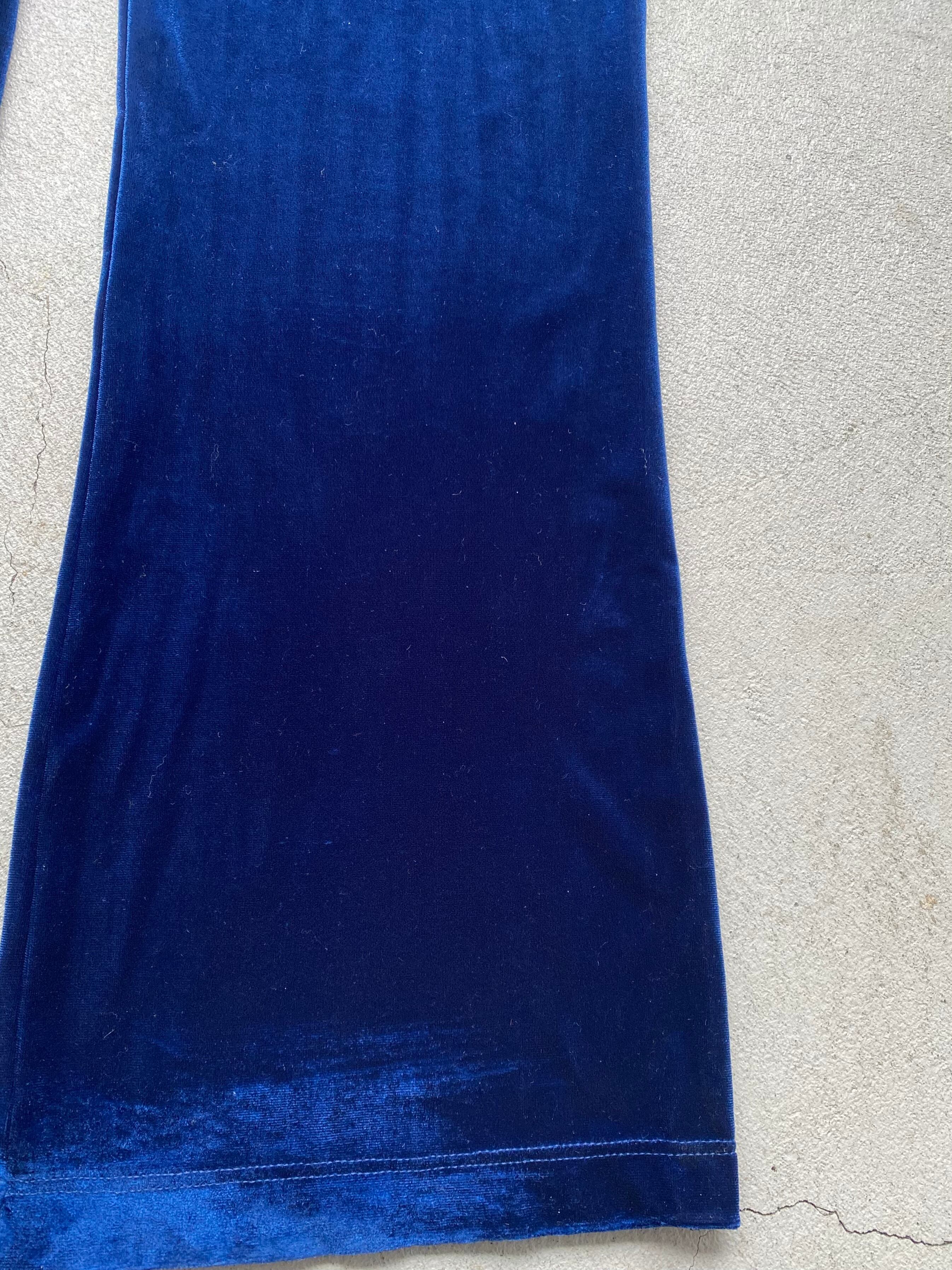 2000年代以降のベロアフレアパンツです。とても綺麗なブルーベースの色目とやや細めなフレアの形がとても綺麗なベロアパンツになります。