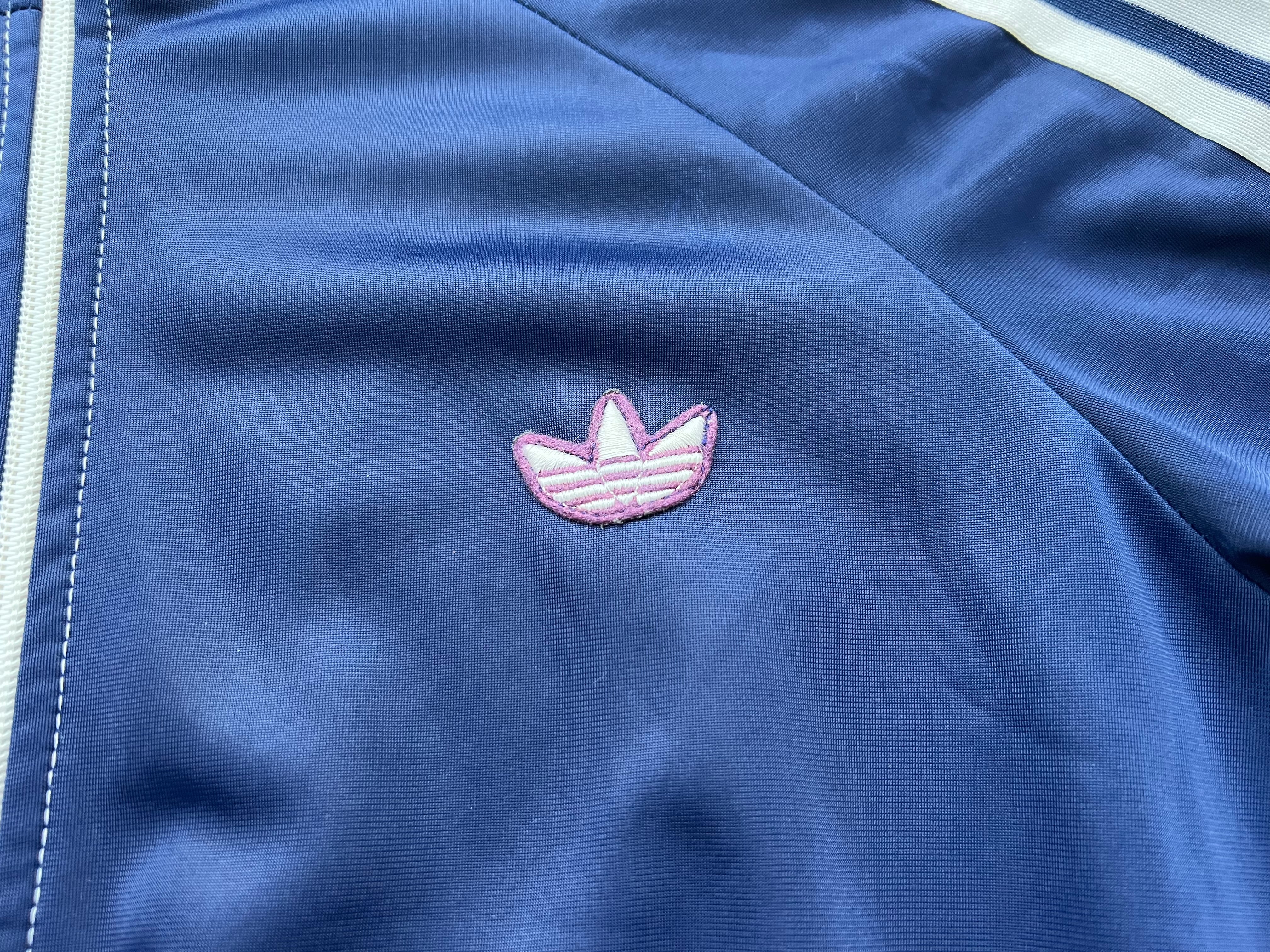 1970年代頃のおそらく西ドイツ製のアディダスのジャージです。ツルッとした化繊の肌触りです。