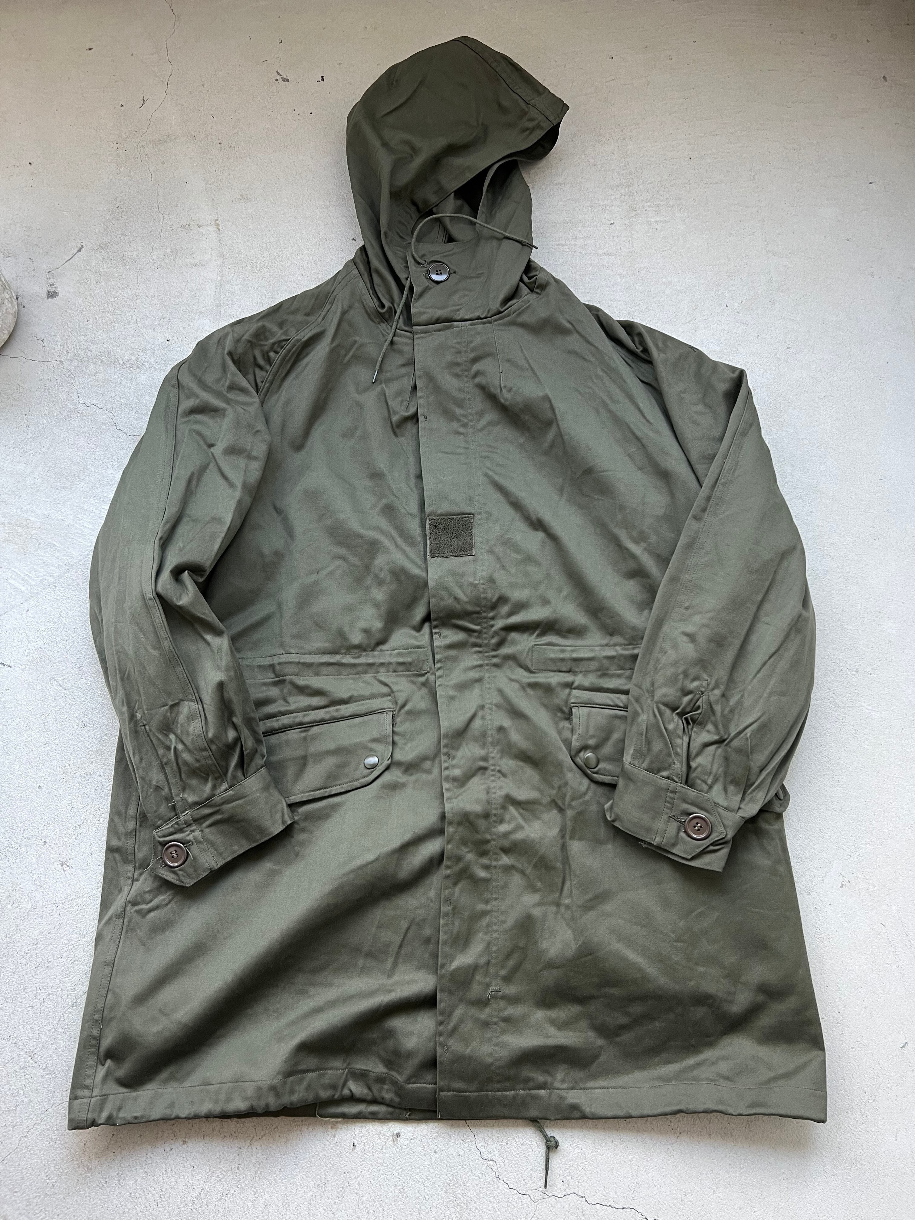 アメリカ軍のm51を彷彿とさせる、カーキグリーンのカラーと長めの着丈で、フードのデザインが特徴的です。