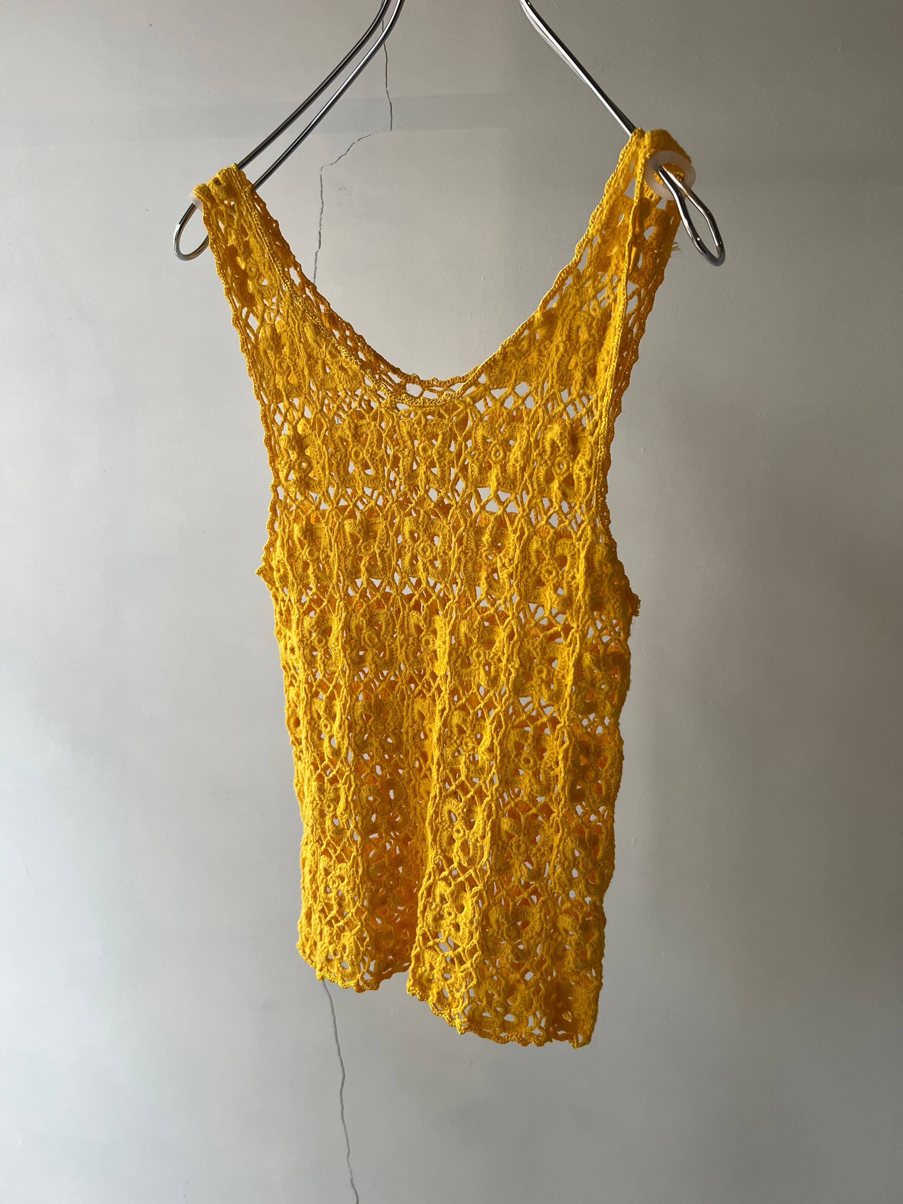 鮮やかなイエローのクロシェ編みがとても可愛いです。