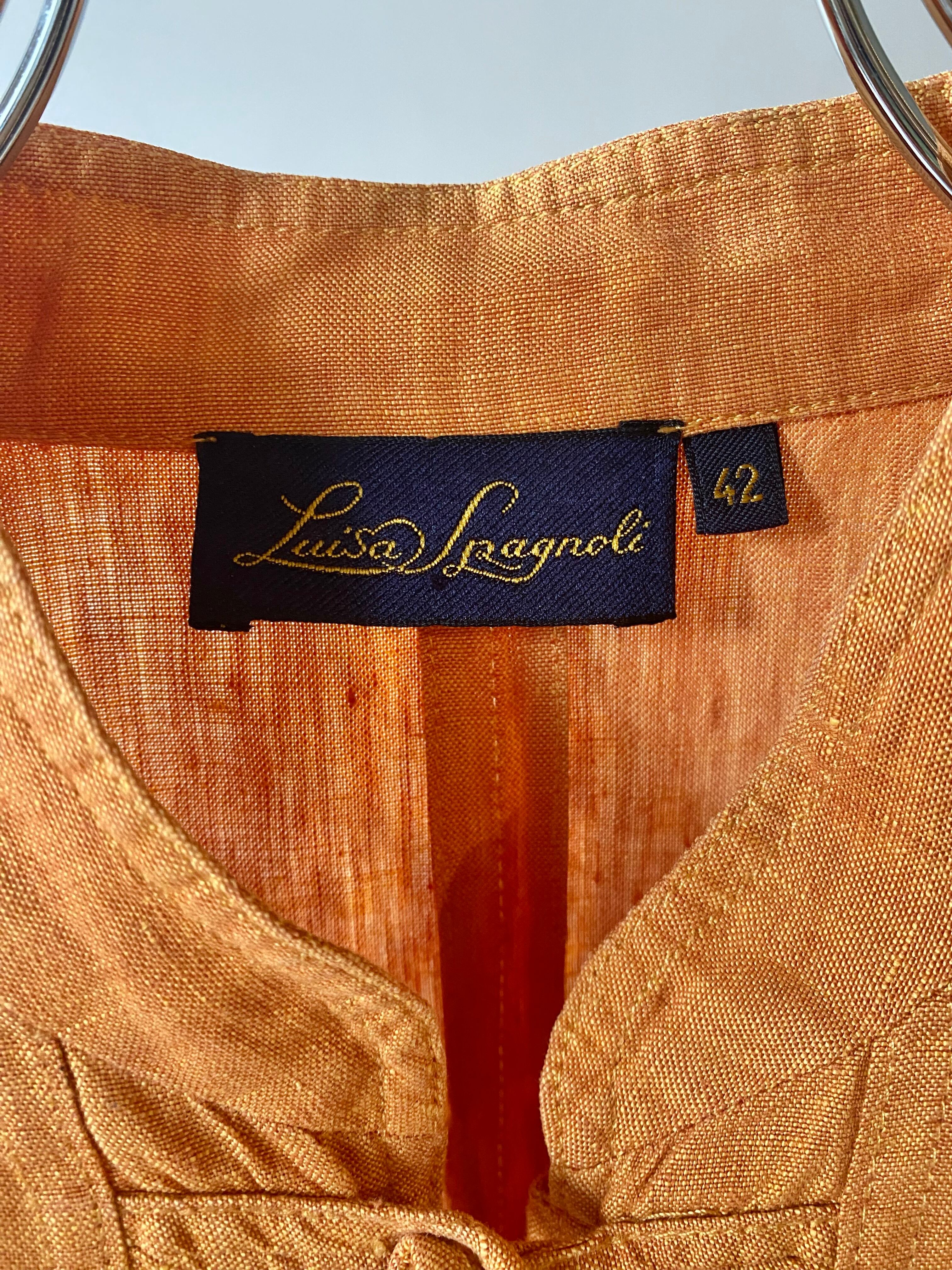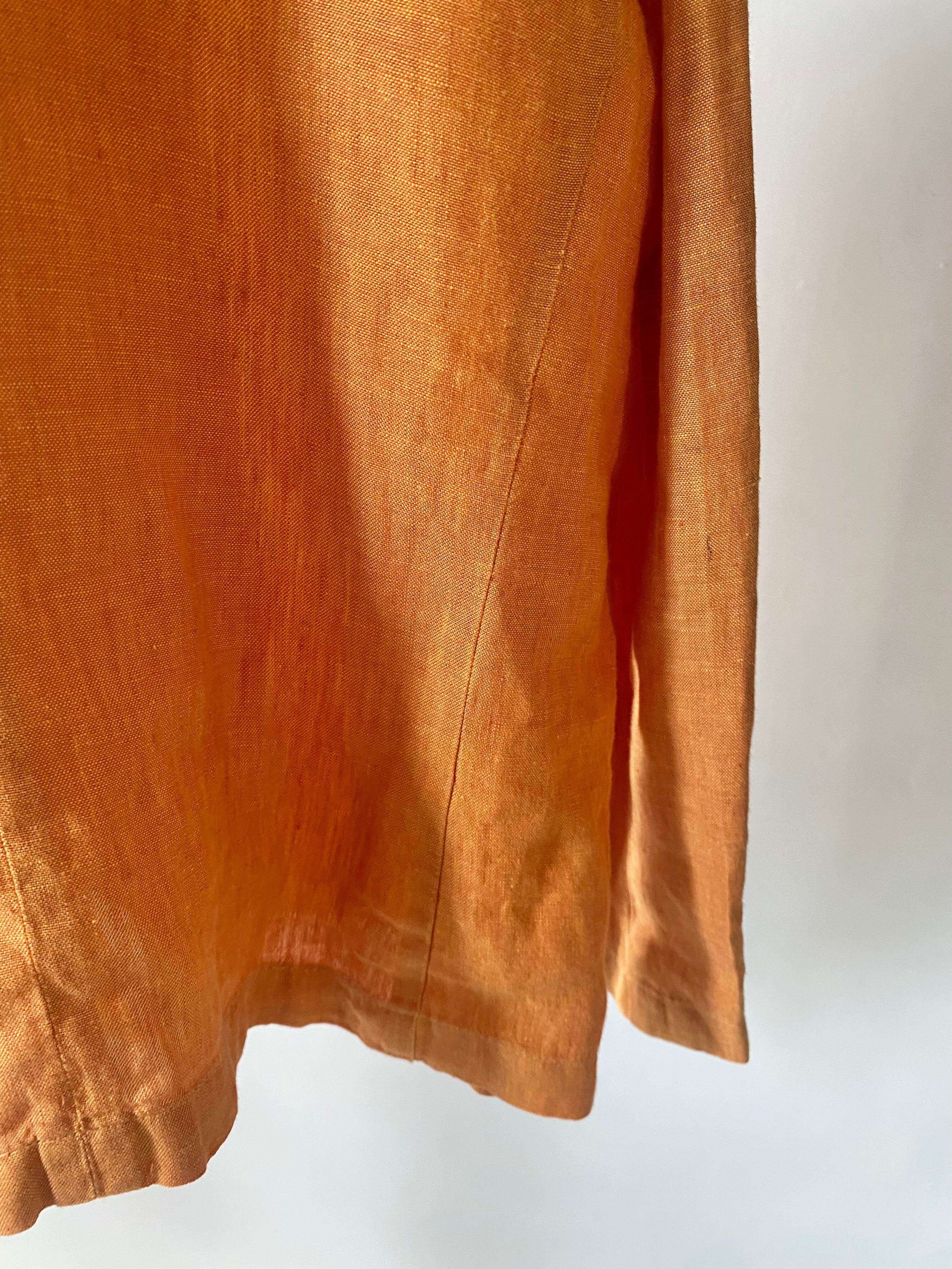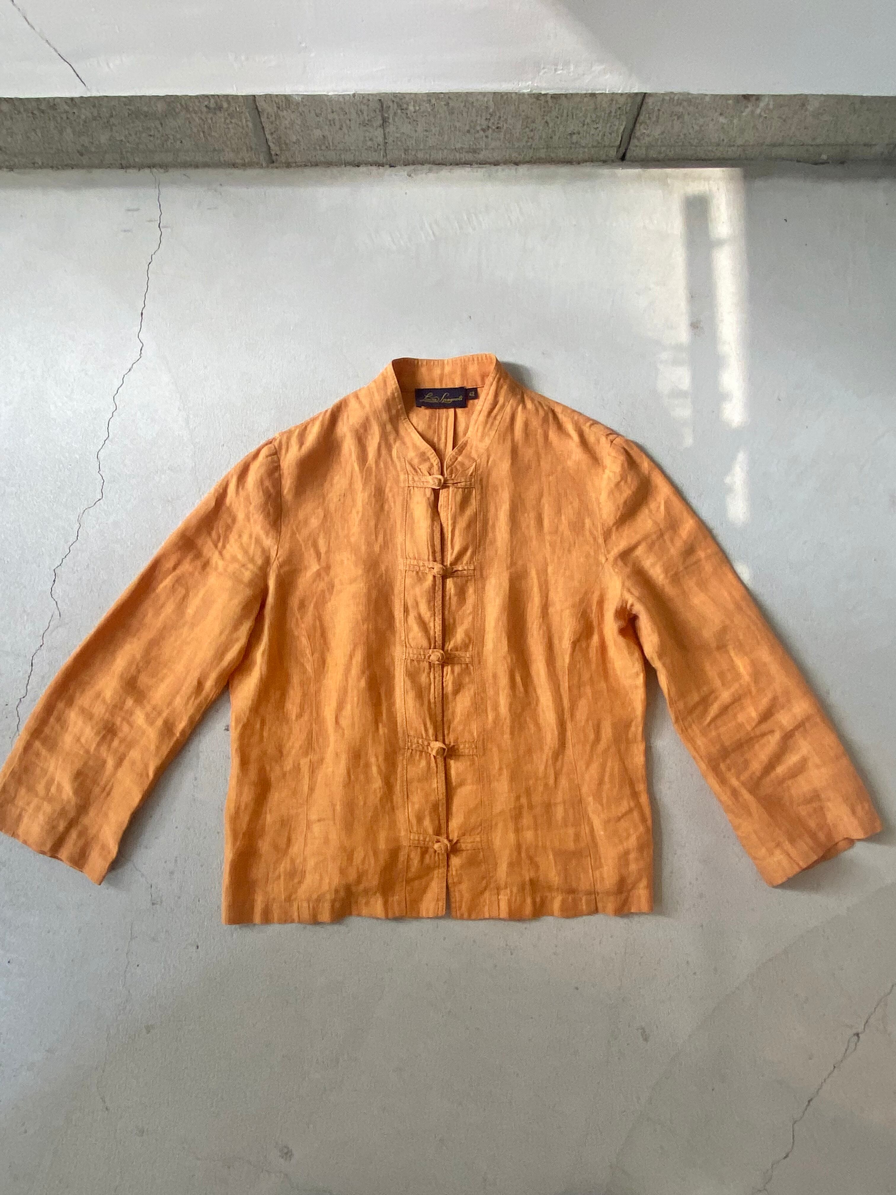 リネン100%のオレンジカラーのチャイナジャケットです。