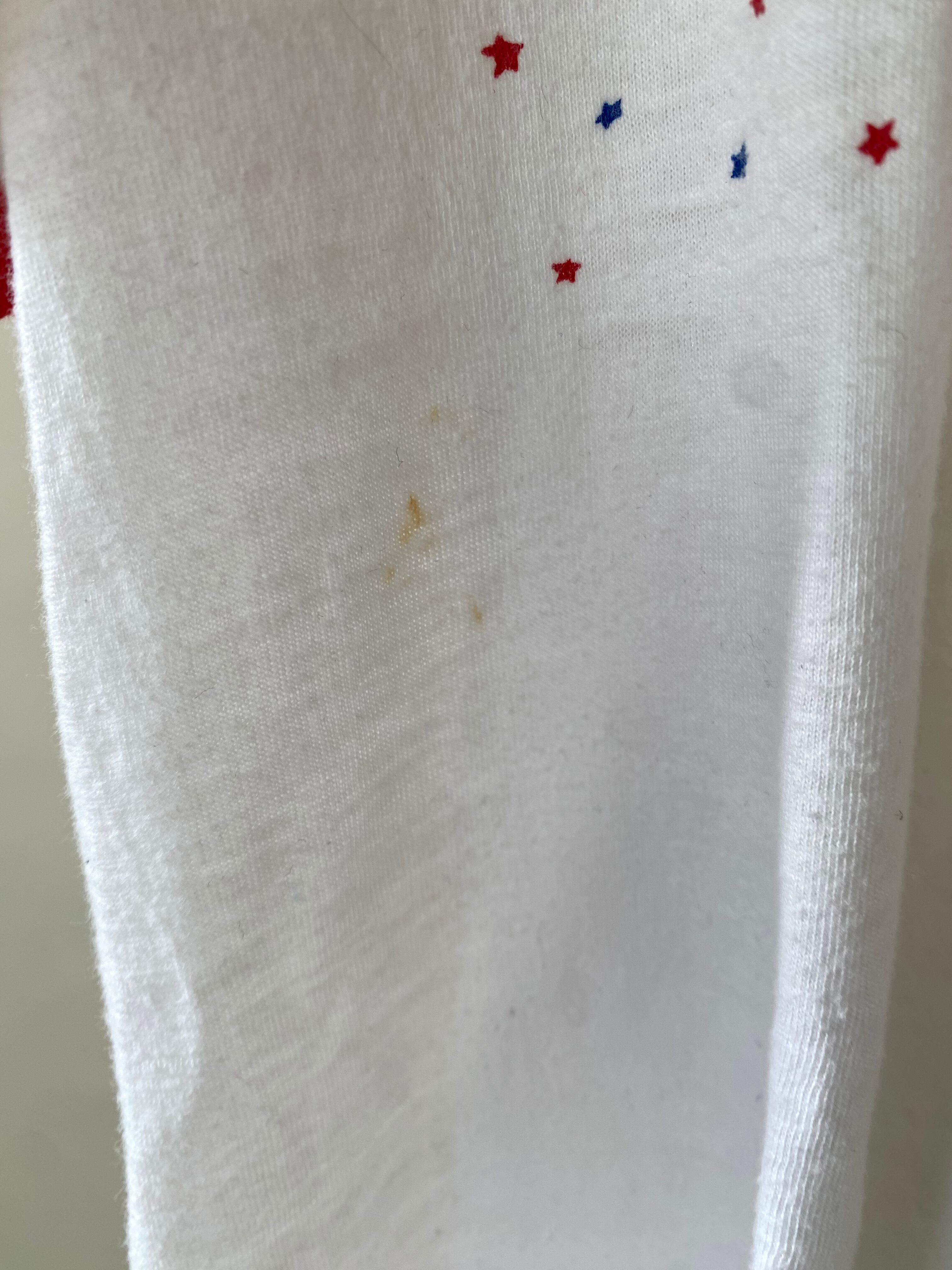 シルクスクリーンの70年代のボディを使っていますがサイズがキッズ用のサイズになるので、夏に向けてジャストサイズで着たい女性にはおすすめです。なかなかこのような小さいサイズの個体は出てきにくいので、お好きな方は是非ご検討ください。