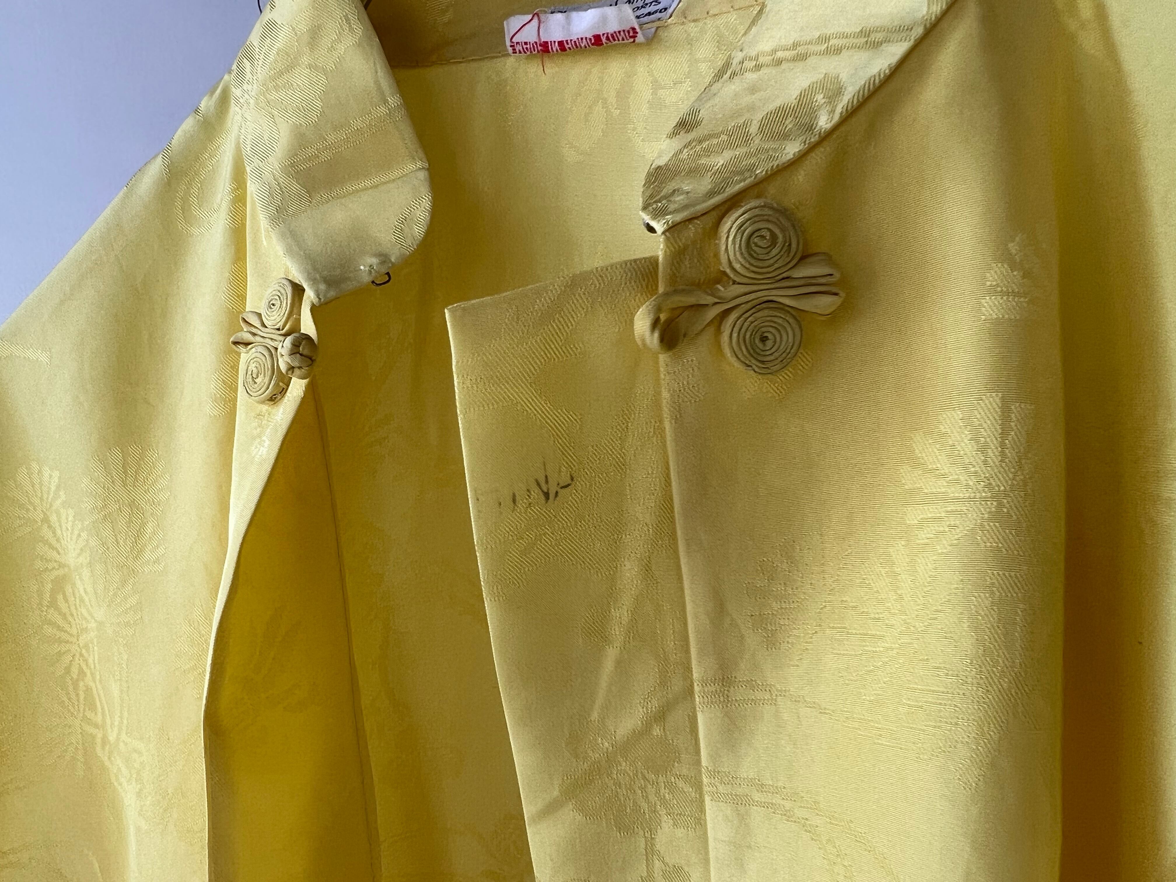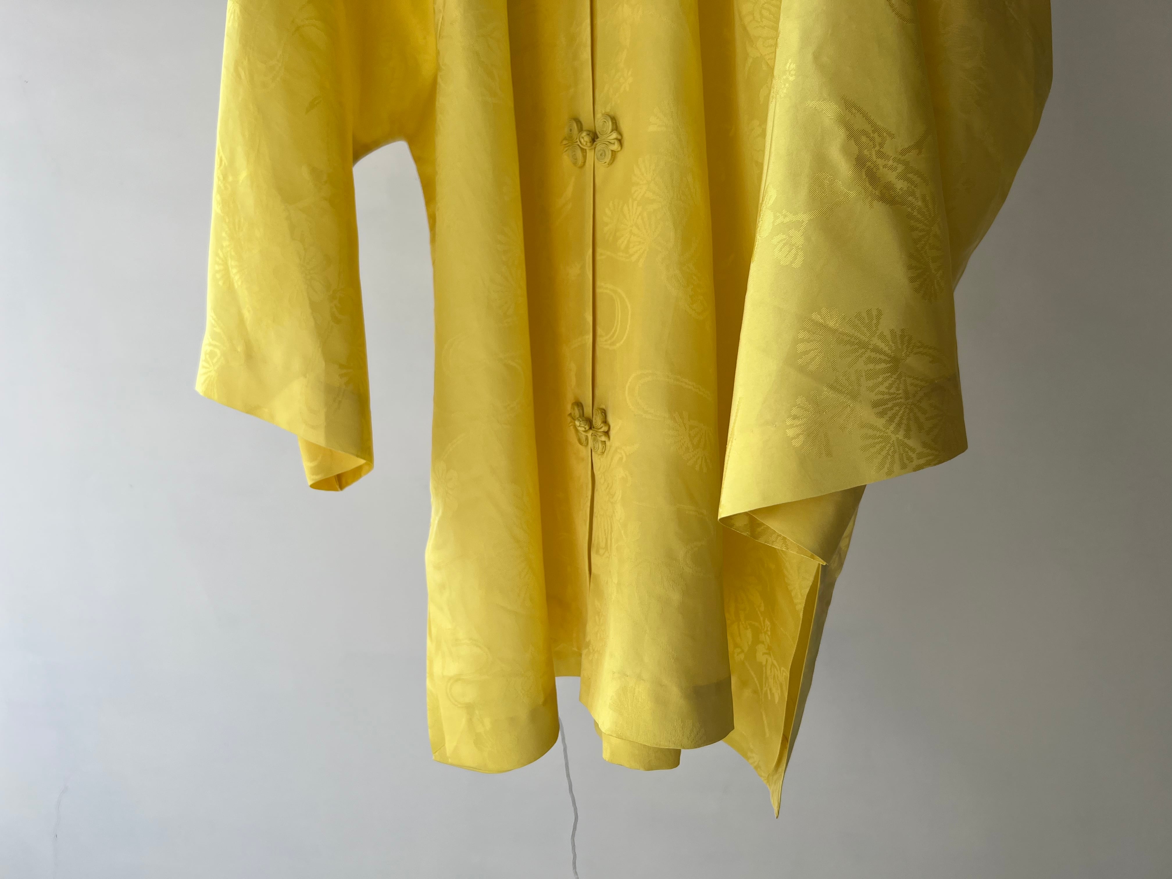 発色の良いイエローカラーのチャイナジャケットで、刺繍も同色で施されています。