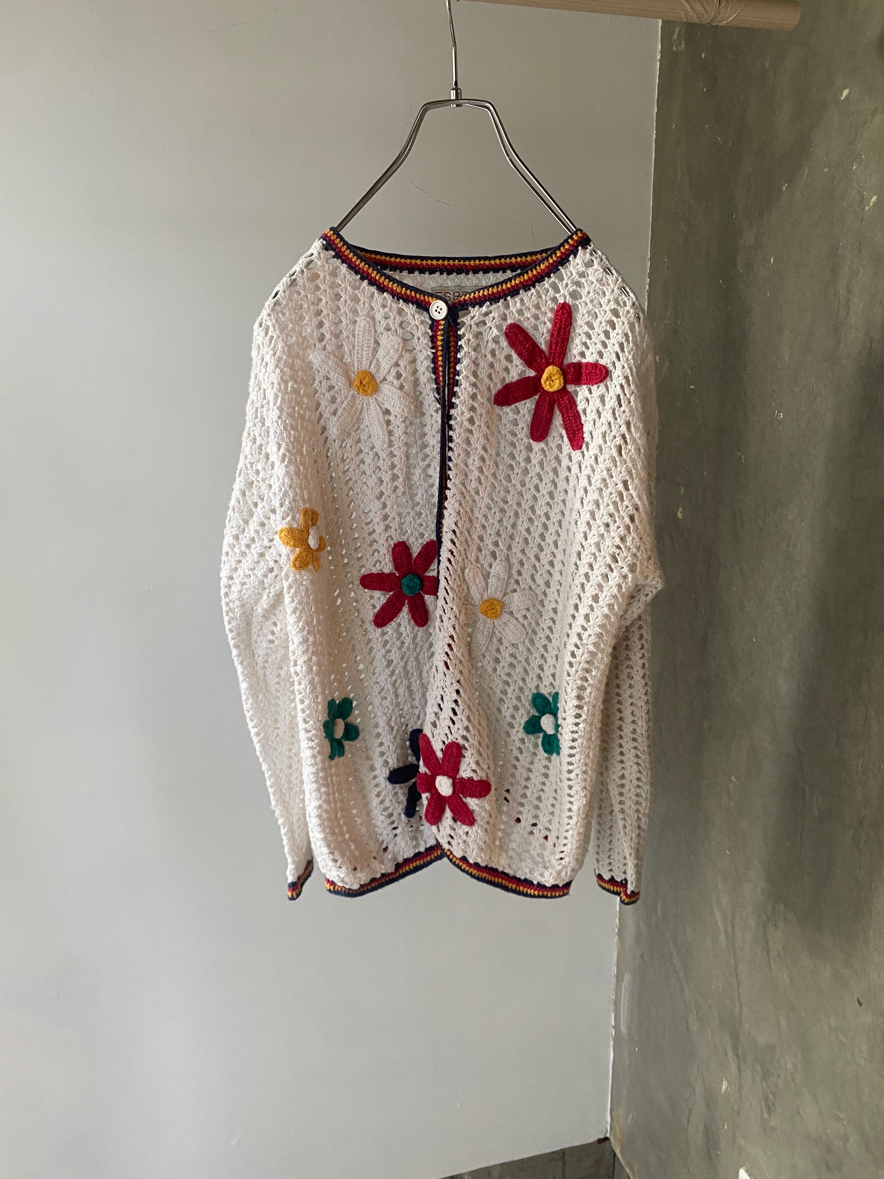 80's embroidery crochet cardigan