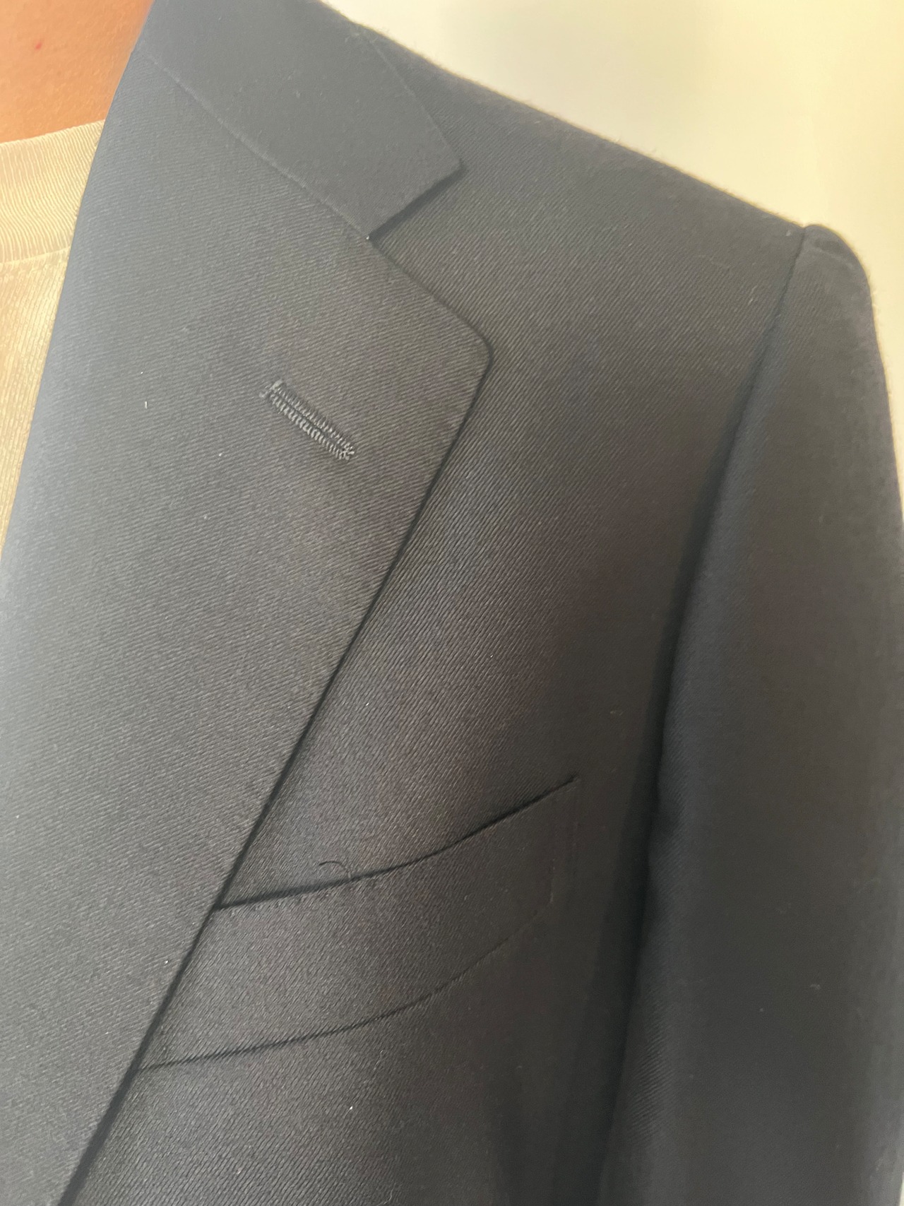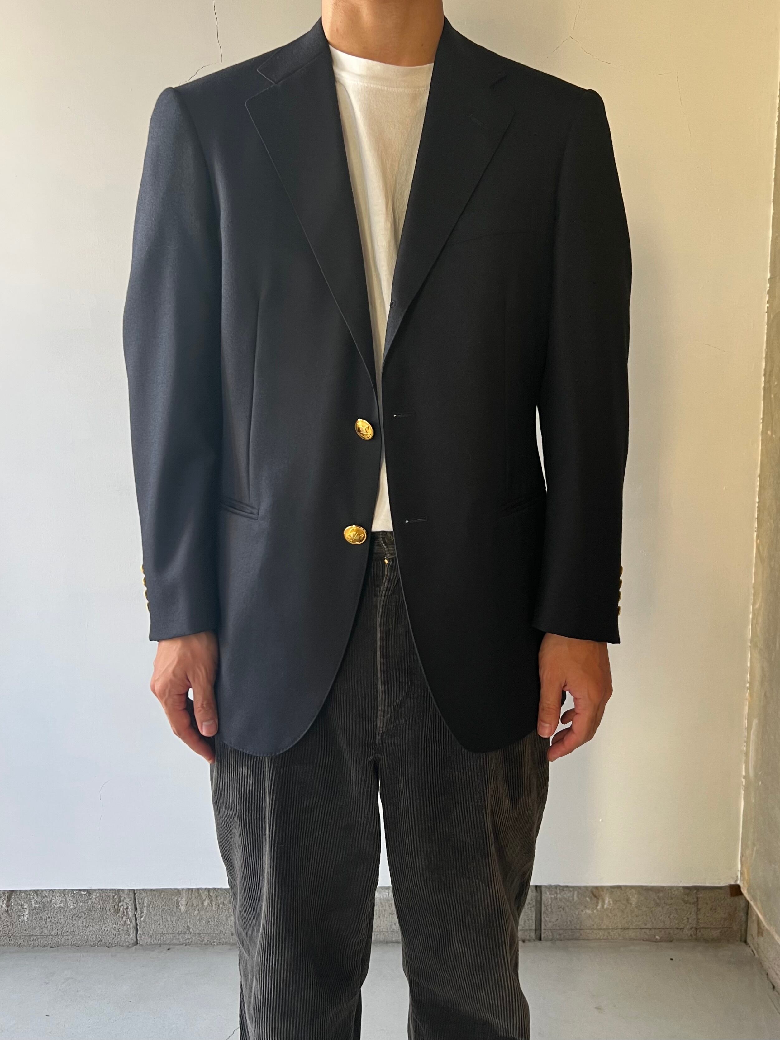 アメリカンクラシックなボックス型、3つボタンセンターフックベントではなく、どちらかというとヨーロッパやアジア市場向けの、段返り3つボタン、サイドベントのディテールになっているので、カジュアルば勿論、ビジネスシーンでもとても使いやすいブレザーだと思います。