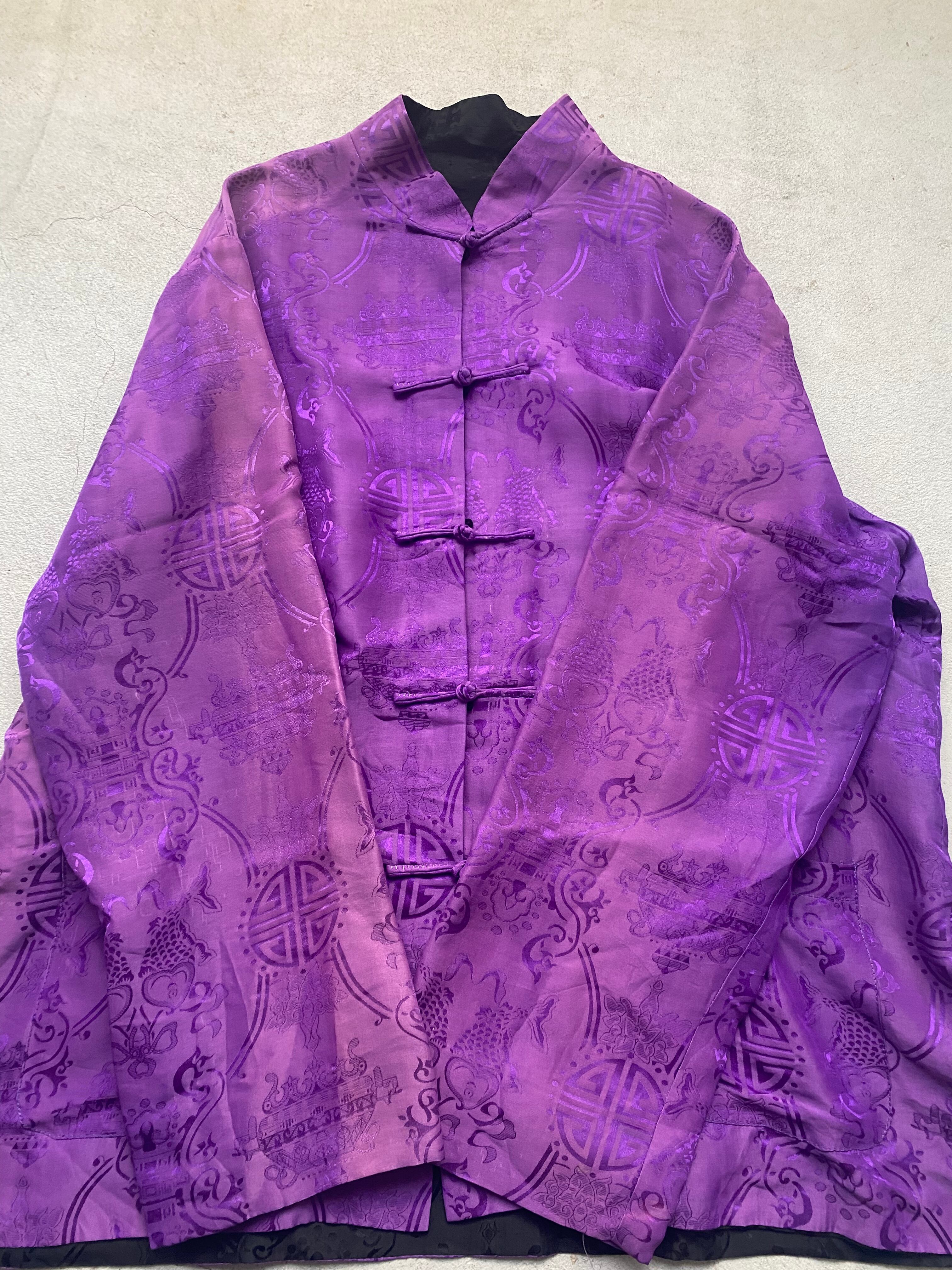 vintageのシルクチャイナジャケットです。リバーシブルで表面はパープル、裏面はブラックです。