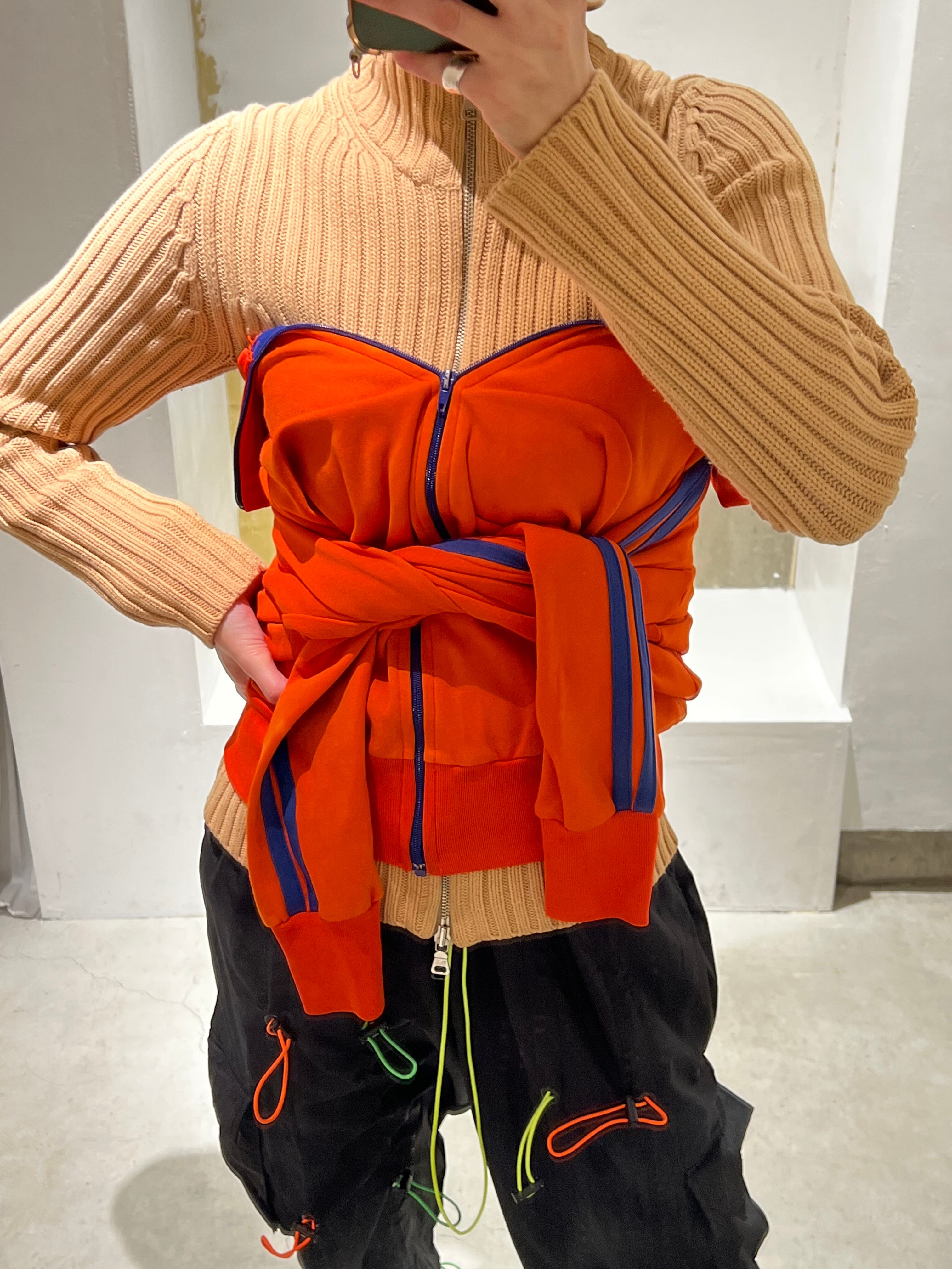 今季もトレンドのzipのドライバーズニットはアウターでもインナーでも着れるので着回しも効きます。