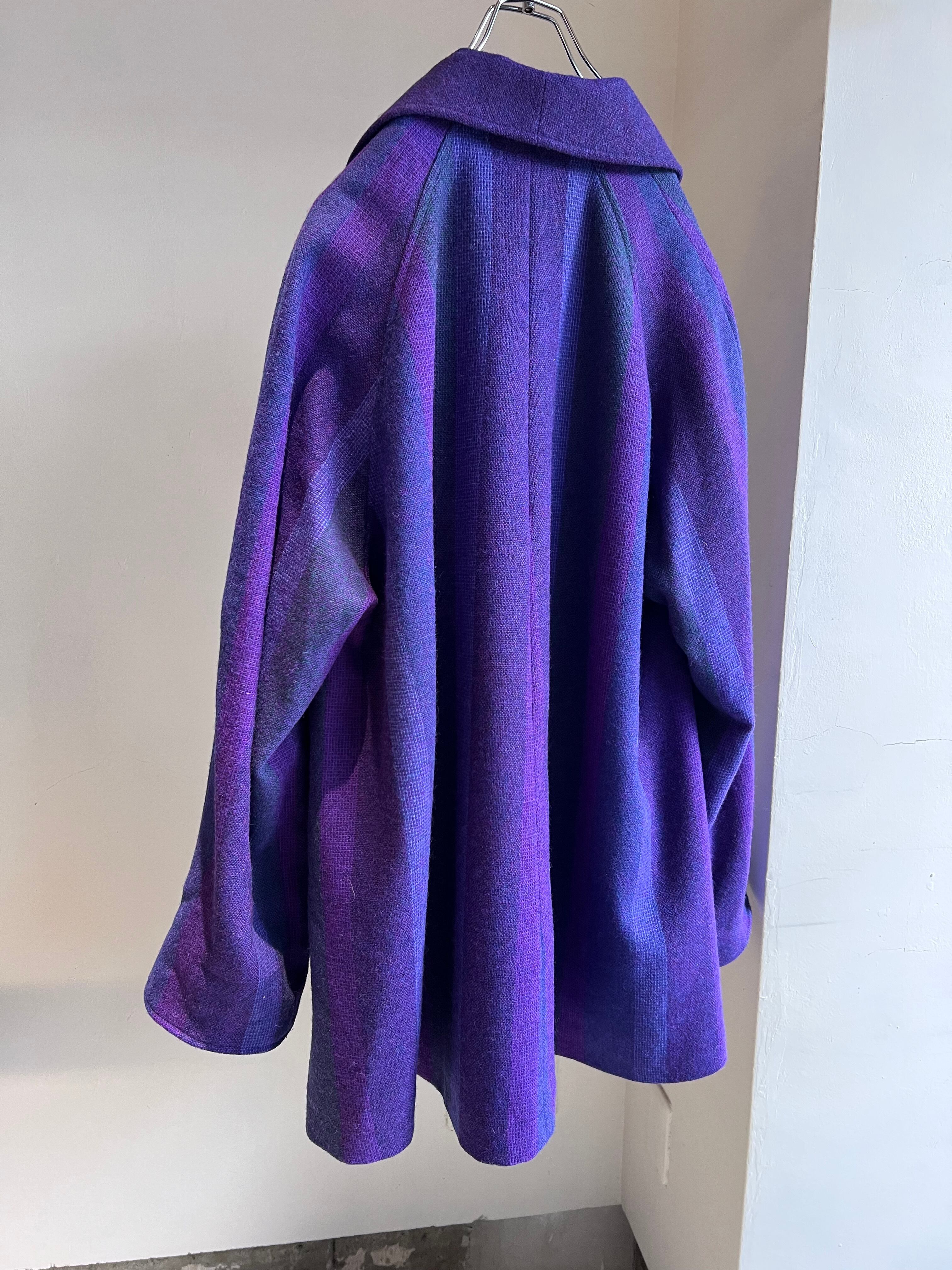 パープル基調の幅の広いストライプとワイドラペルの特徴的なデザインも良いですが、