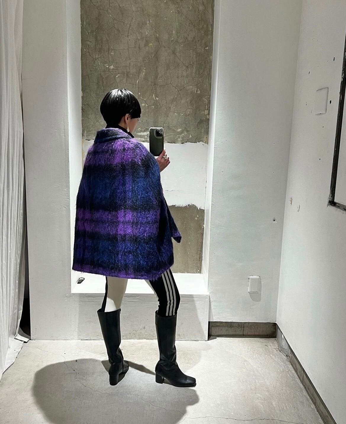 パープル×ネイビー×ブラックのシャドーチェックの配色がとても上品です。