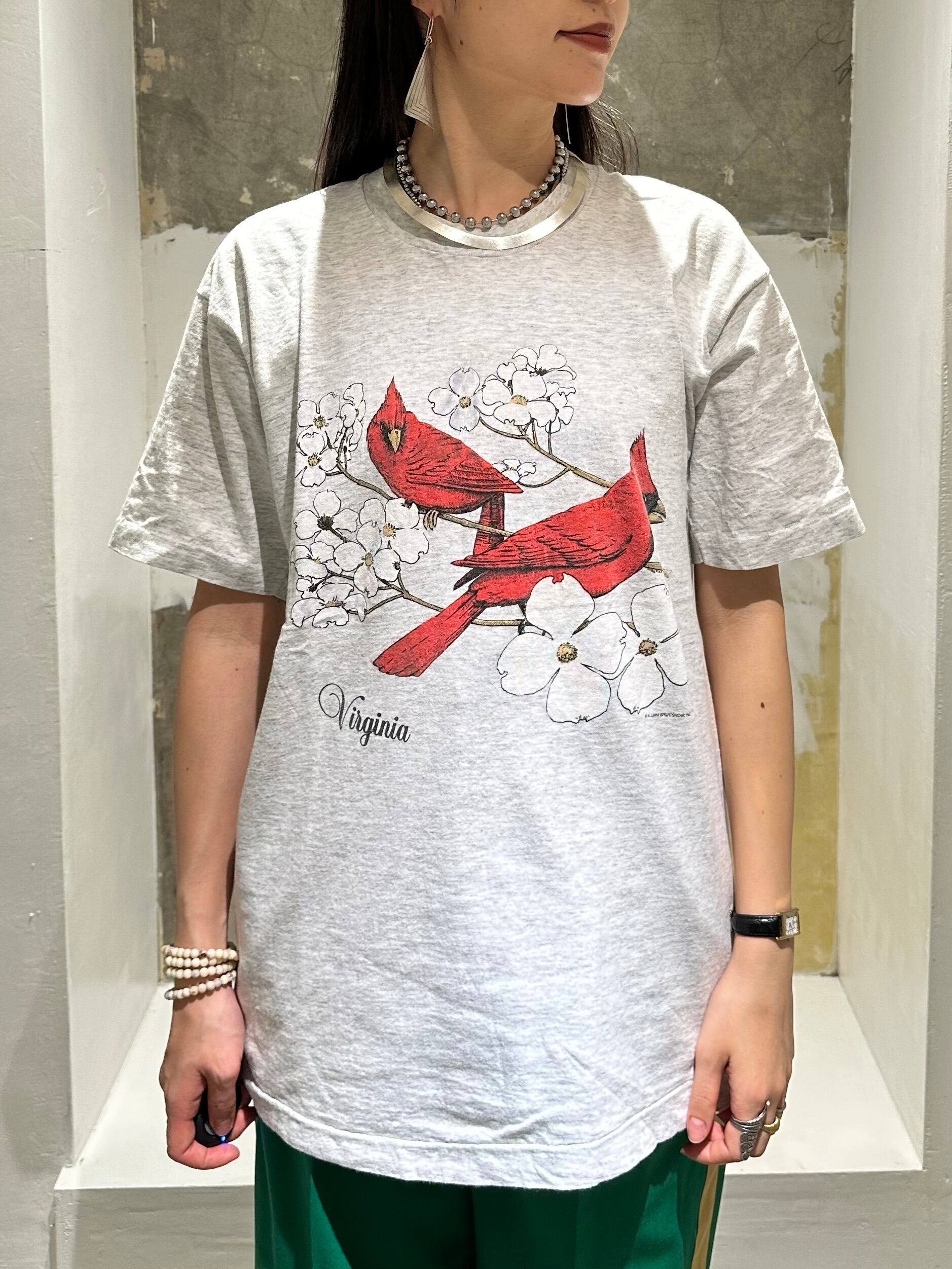アメリカ・ウェストヴァージニア州の州鳥であるショウジョウコウカンチョウと、州花のハナミズキが描かれています。