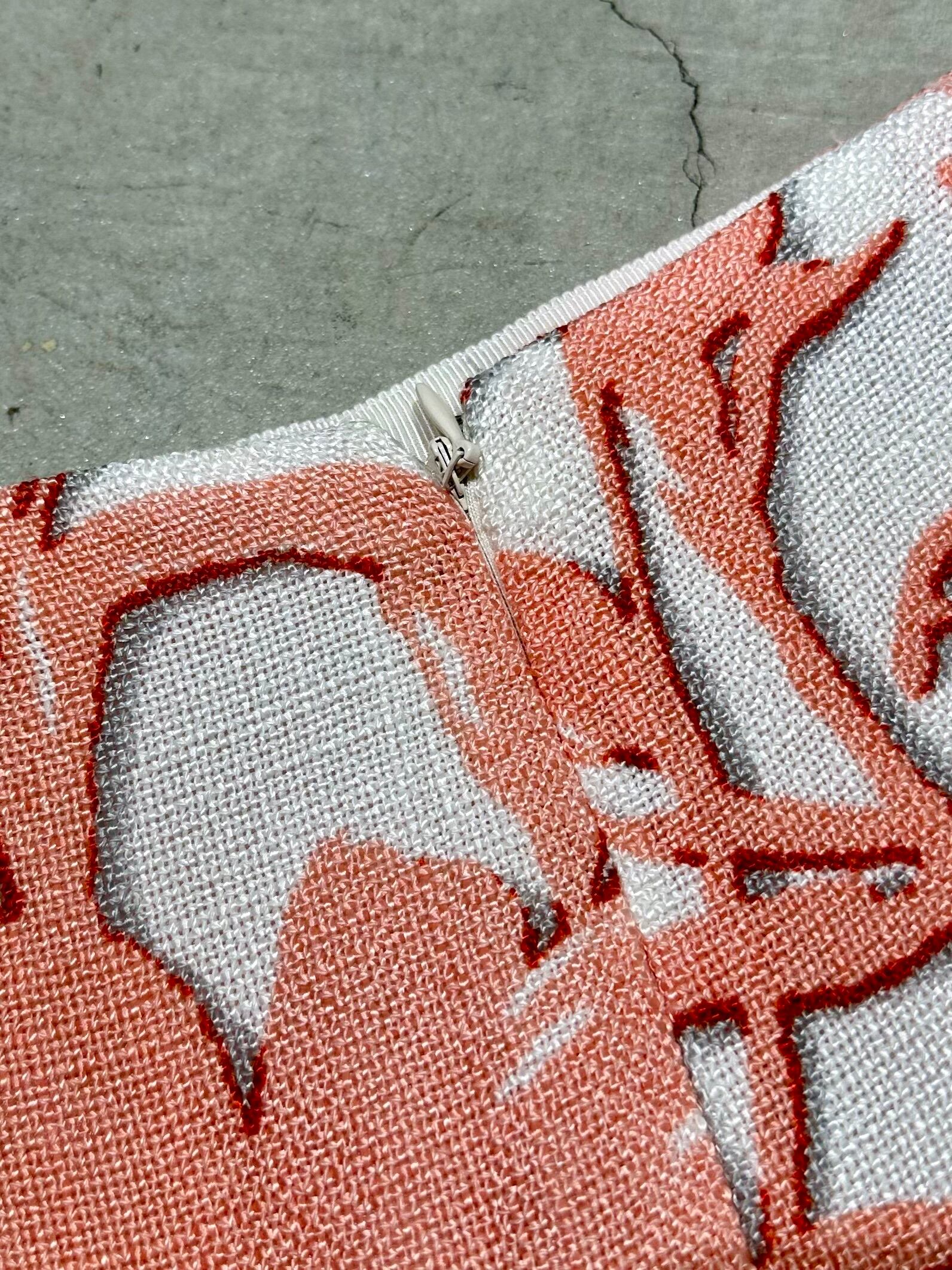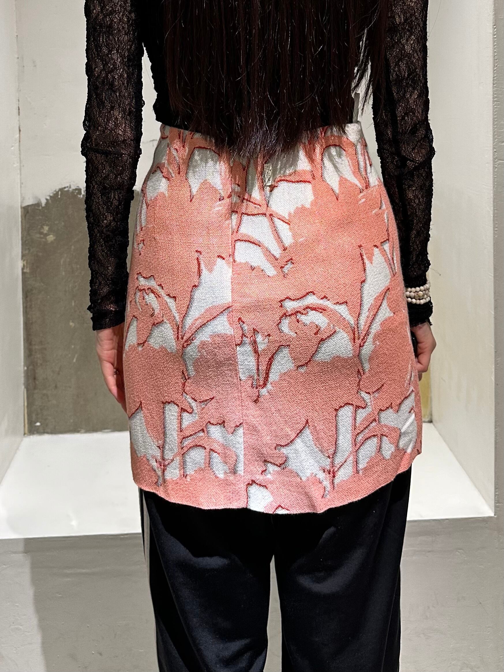 ピンクの花柄ですが、台形シルエットなので甘くなりすぎずにお召しいただけます。
