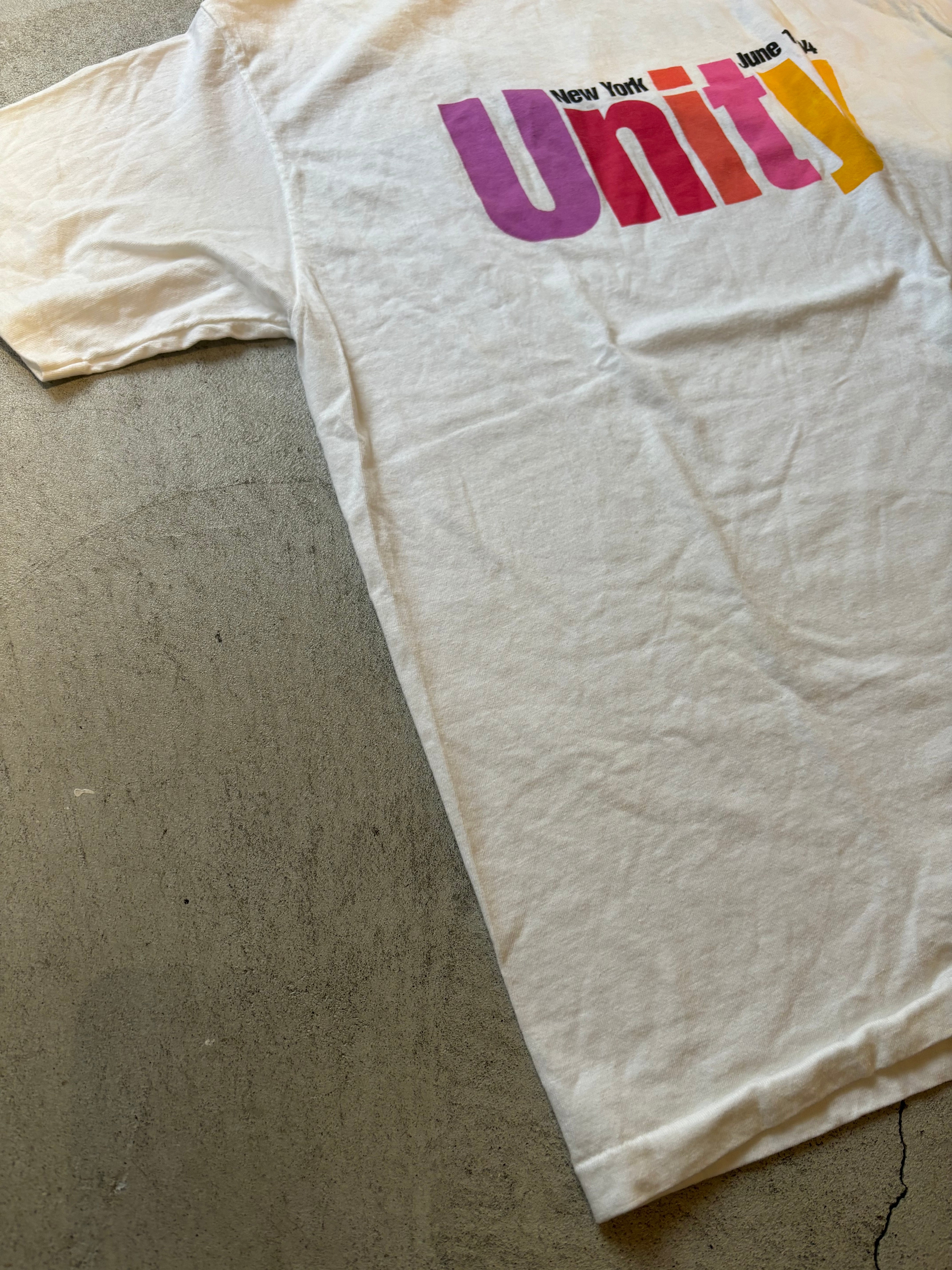 胸に大きくUNITYと書かれ、バックプリントにもi'm on the teamと書かれているので、LGBTQの運動参加者が着ていたものだと思います。