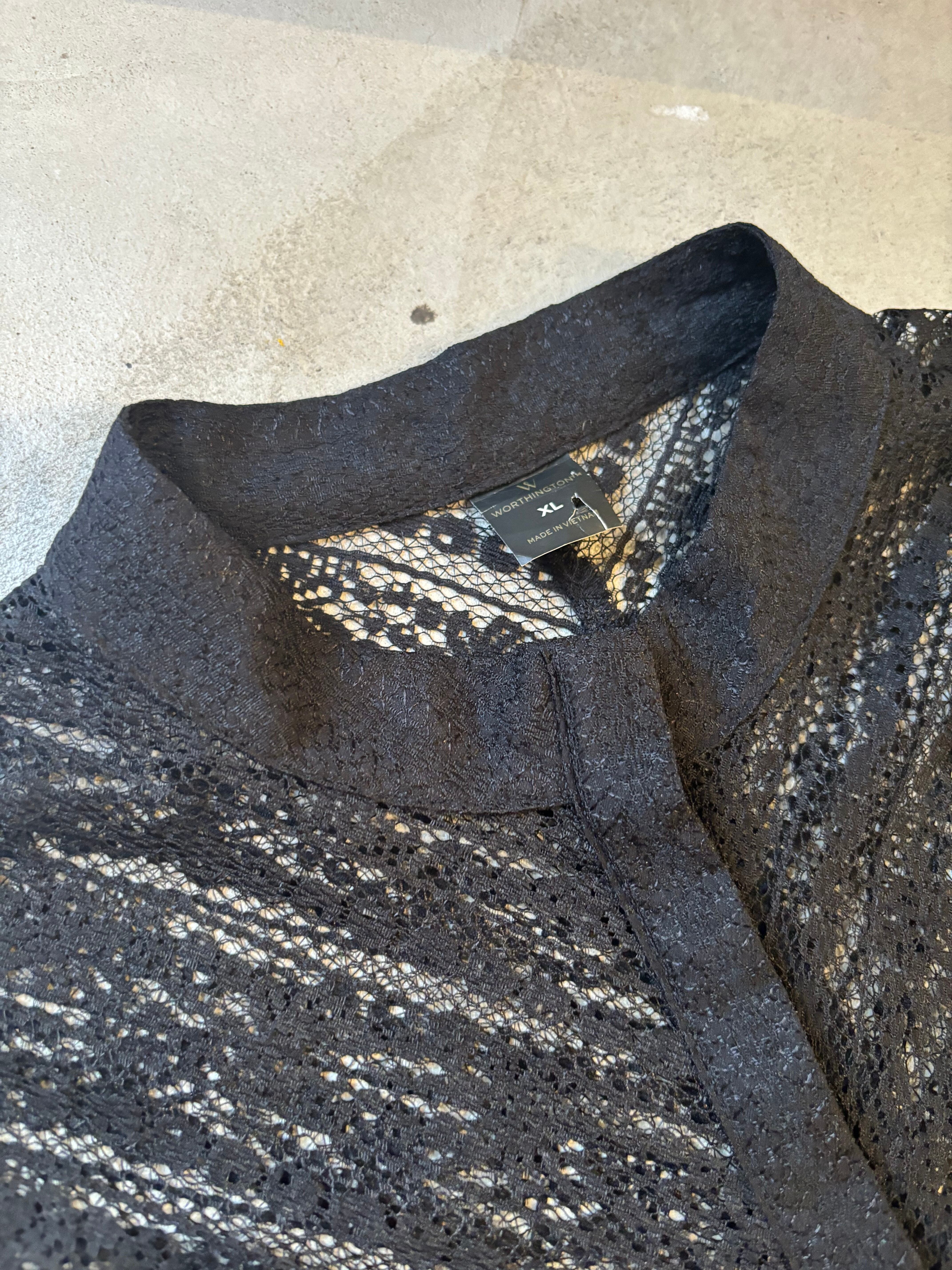 ユニセックスのレースブラウスです。レディースのXLなので、ややメンズに比べると小さめですが、小柄な男性かオーバーサイズで女性が着ると可愛いと思います。