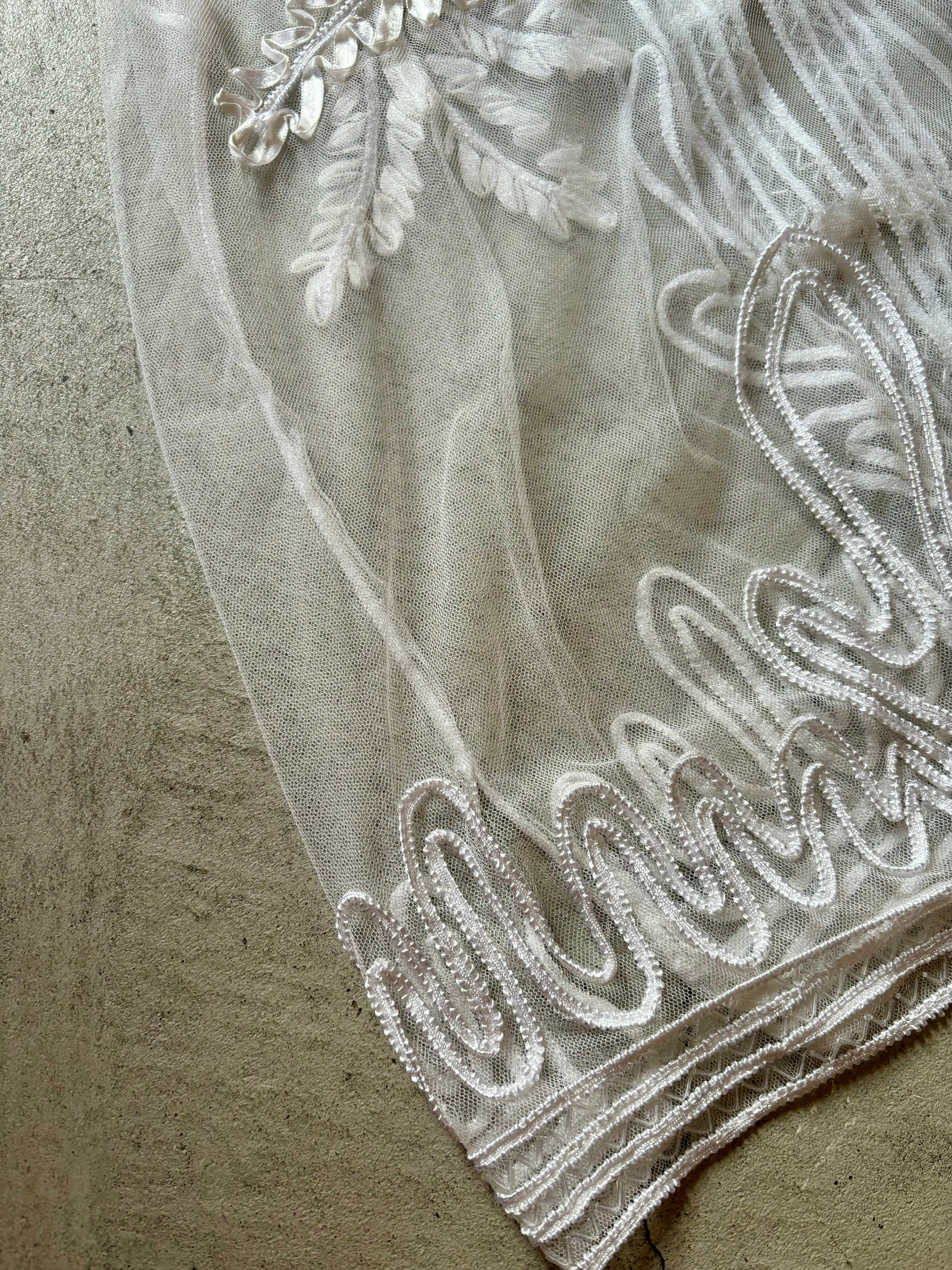 90年代ごろの刺繍のシアーベストです。当時トレンドだったようで様々なパターンのものが見つかりますが、ここ数年シアー素材が定番化した影響もあり、最近ではあまり見かける事が少なくなってきました。