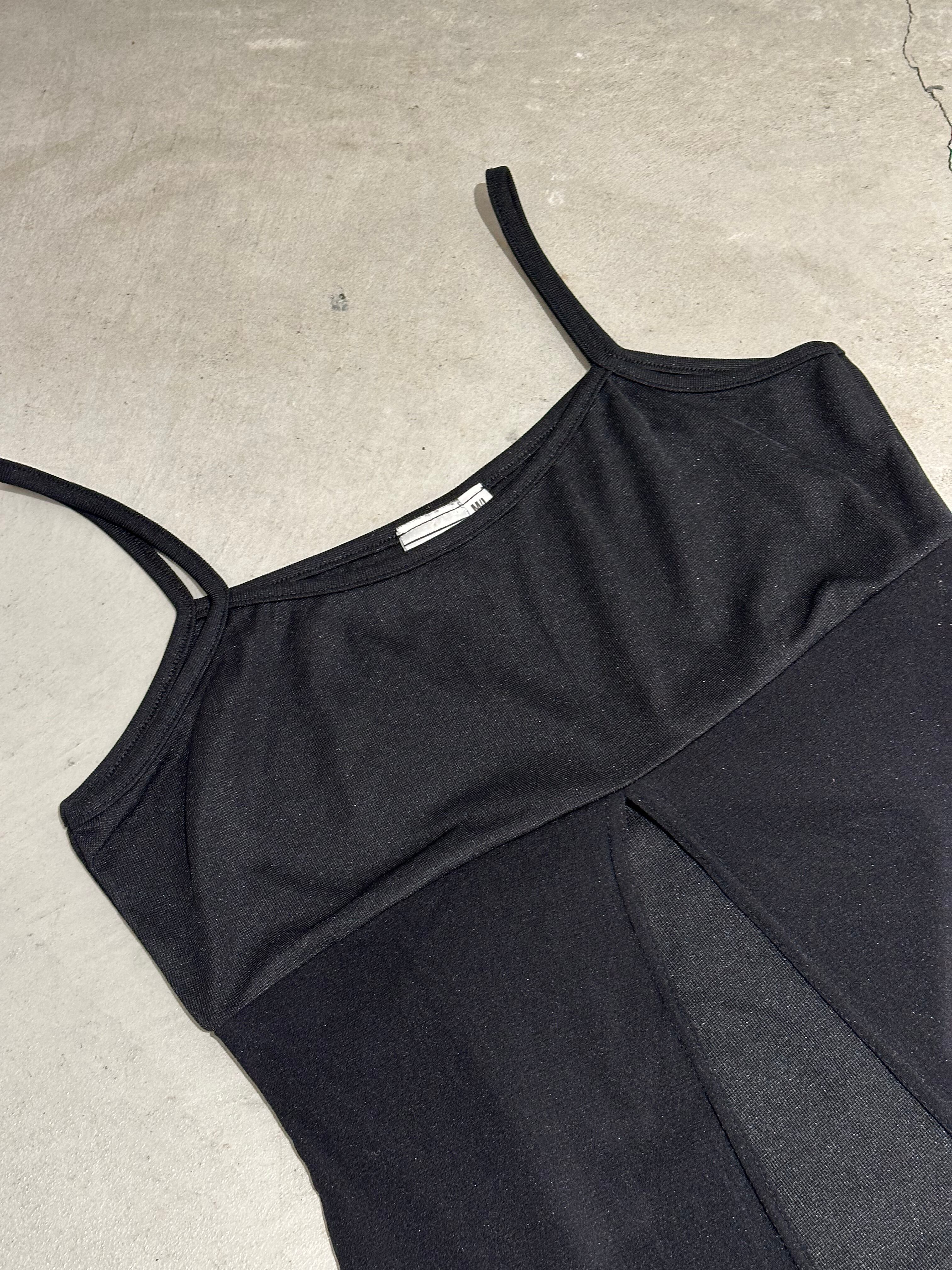 後ろから見るとロングワンピースですが、前から見るとミニワンピースにシアーがドッキングされた個性的なデザインのワンピースです。