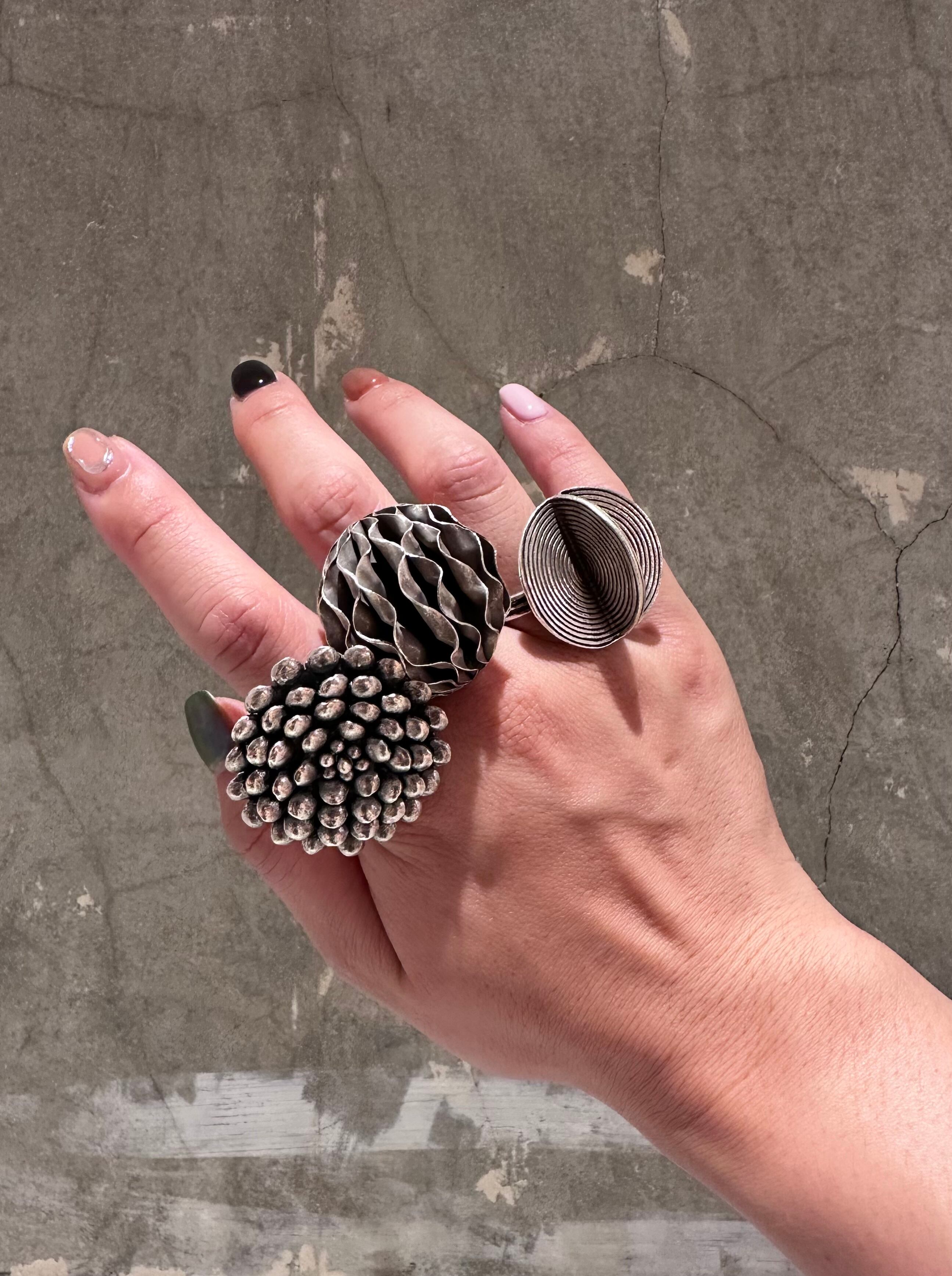 カレンシルバーはタイで調達してきたものですが、このリングは現地でも手に入りにくい貴重な一点となっております!立体的なデザインで、細かいところまで丁寧に作られているので、どの角度からでも楽しめるデザインとなっております!