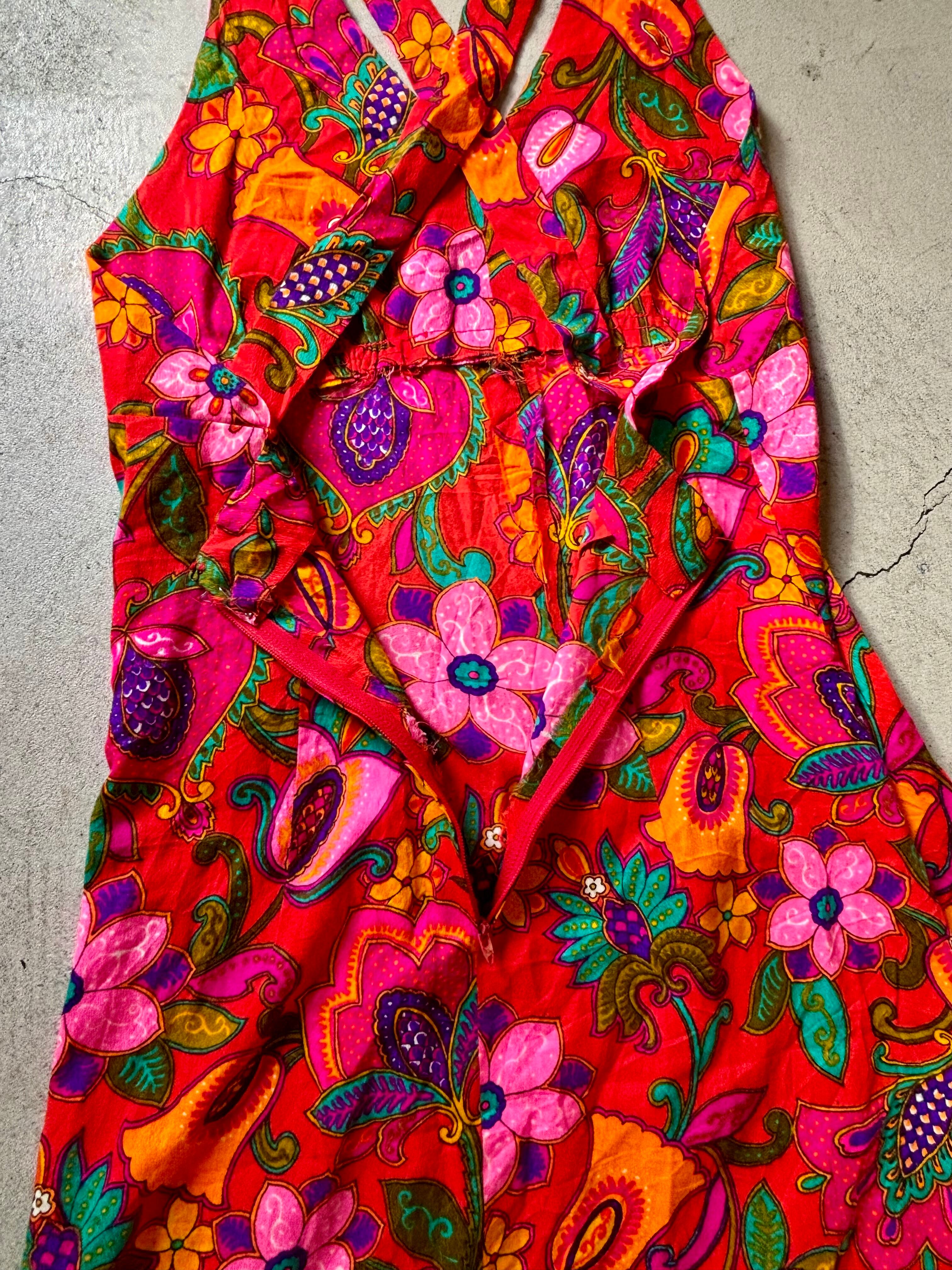 vintageのハワイアンドレスらしい生地で表面が少しざらっとした生地感で肌離れが良さそうで、涼しく出来ていそうです。