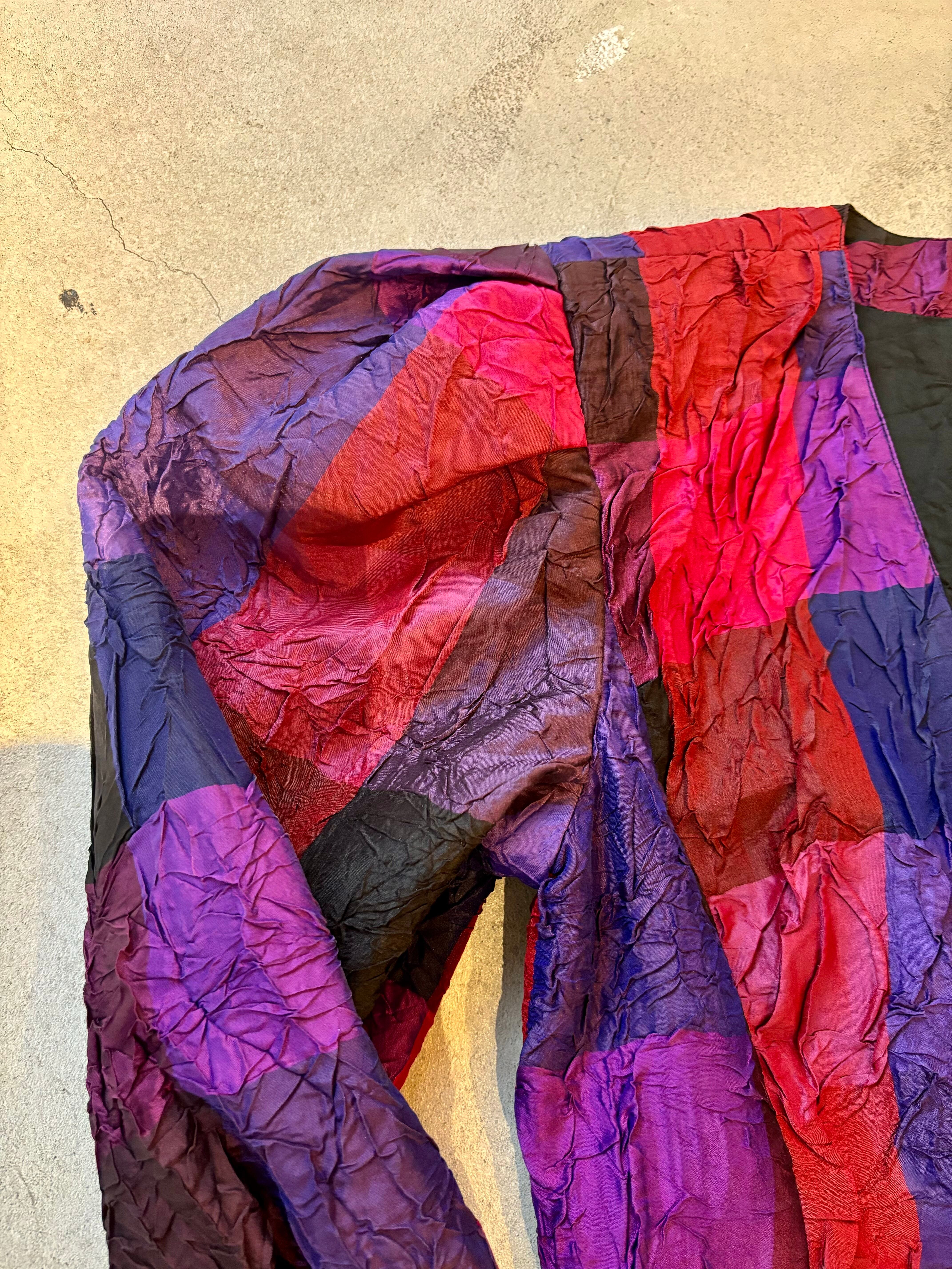 シワ加工がされた素材感に、ワインレッド×パープル×ブラックのブロックチェックも個性的でめちゃくちゃ可愛いジャケットだと思います。