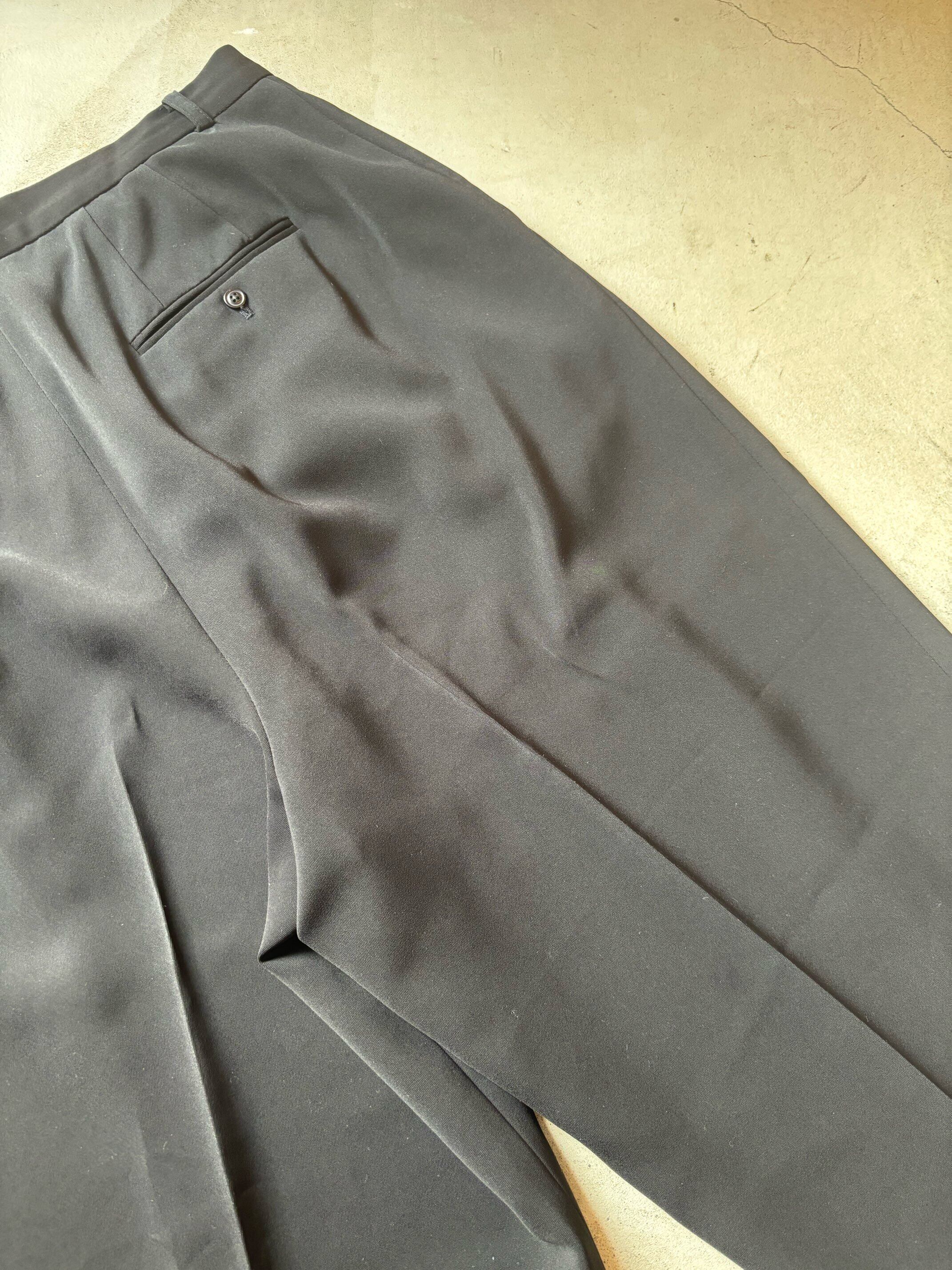 90年代頃のワイドトラウザーズです。深いネイビーカラーで黒と見分けが付きにくい位の紺色です。