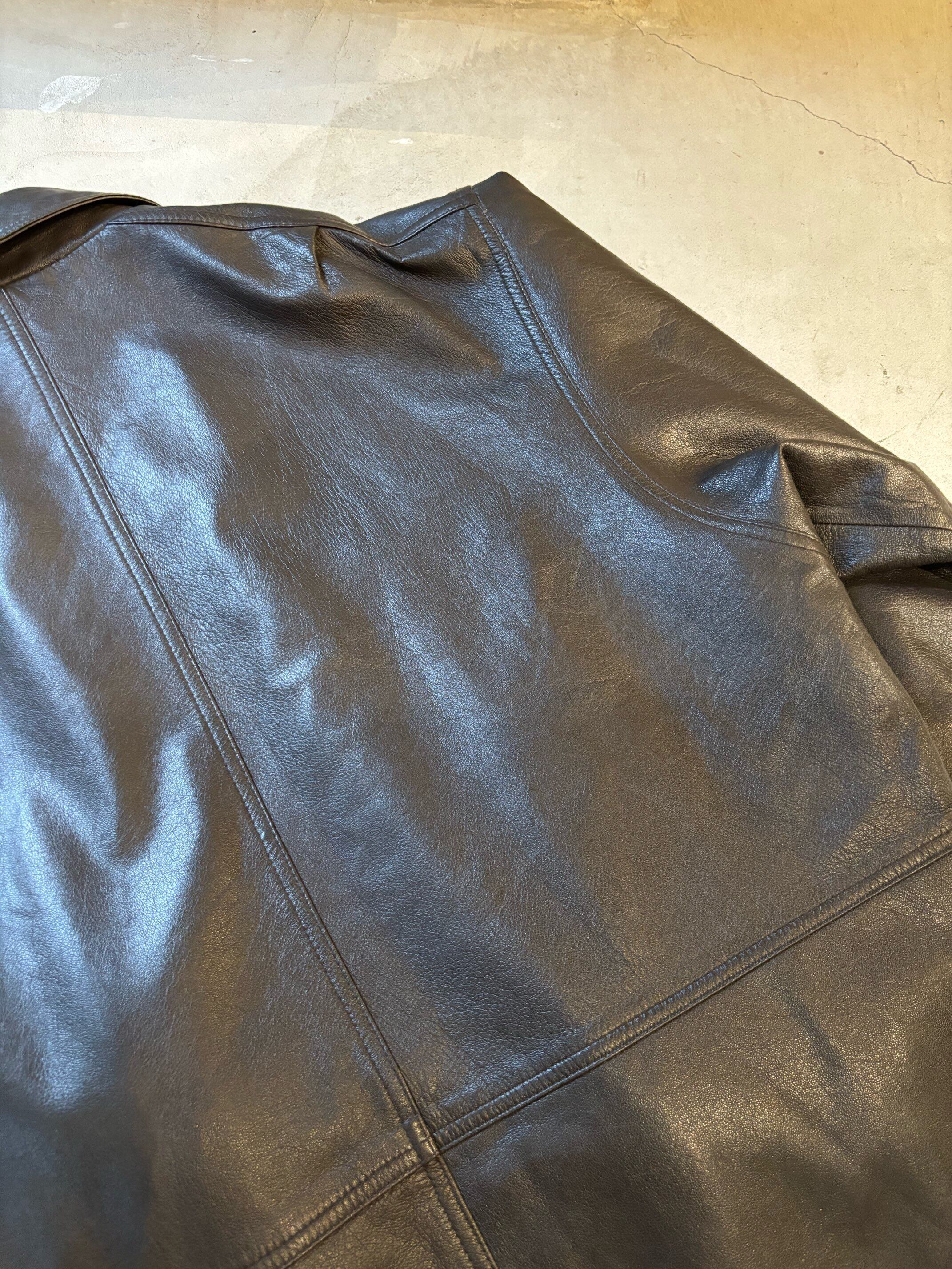 80年代頃のレザーカーコートです。ベーシックな焦茶で使いやすそうです。
