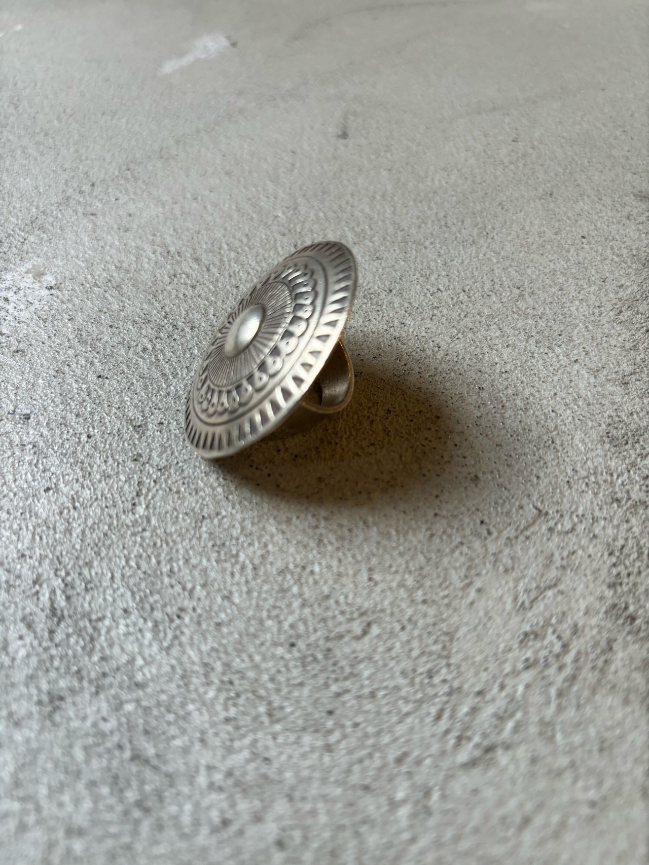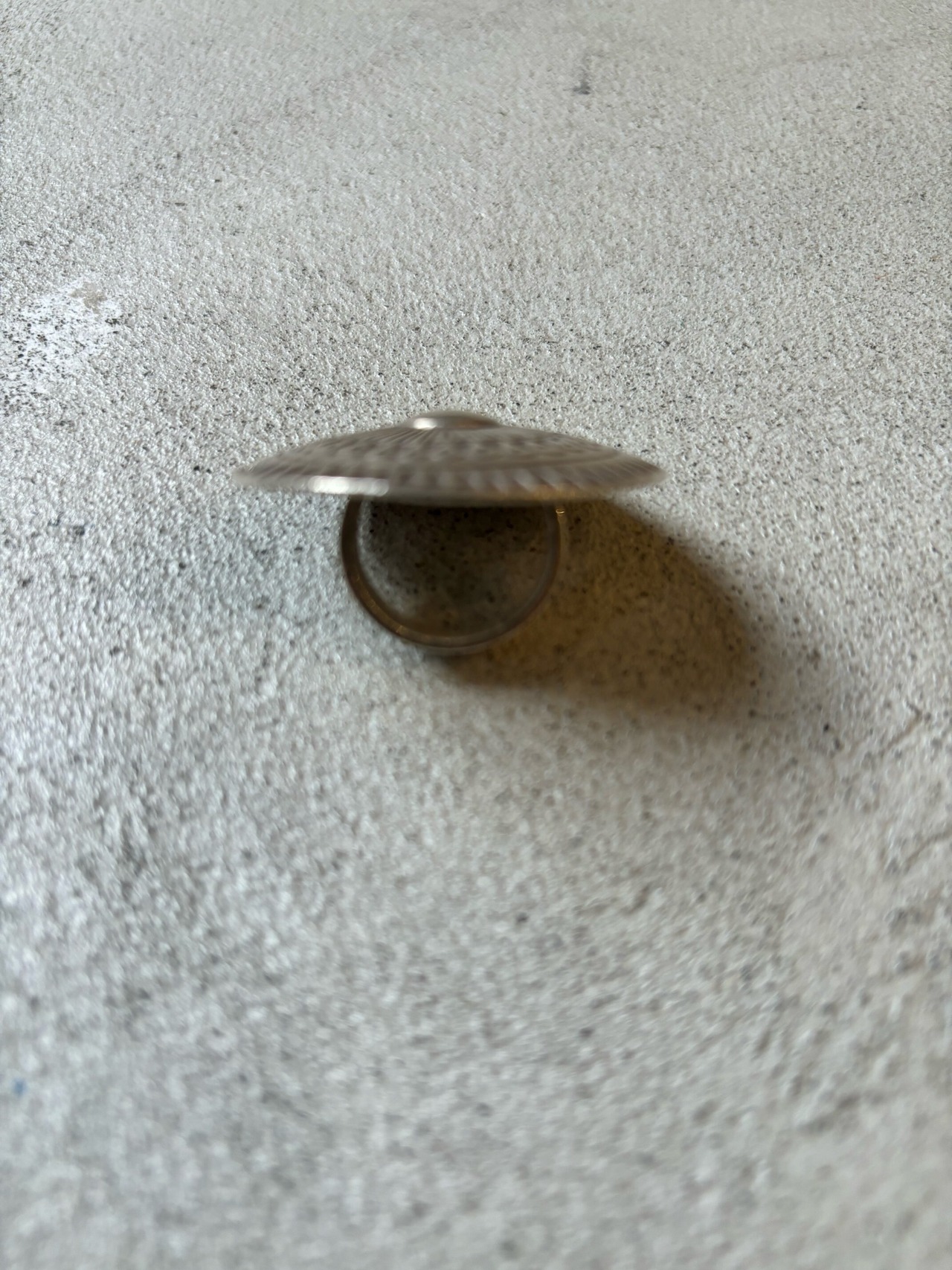 karen silverのリングです。丸い形に刻印が入ったkaren silverらしいデザインのリングです。