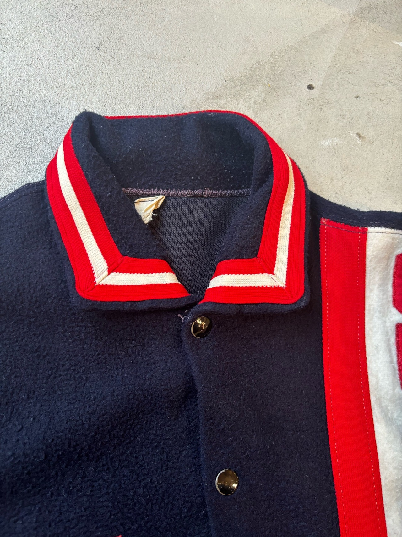 60年代頃のフリース素材の半袖ブルゾンです。いわゆるカレッジものだと思いますが、アメフトやその他アメリカの人気のスポーツで使われていたものだと思います。