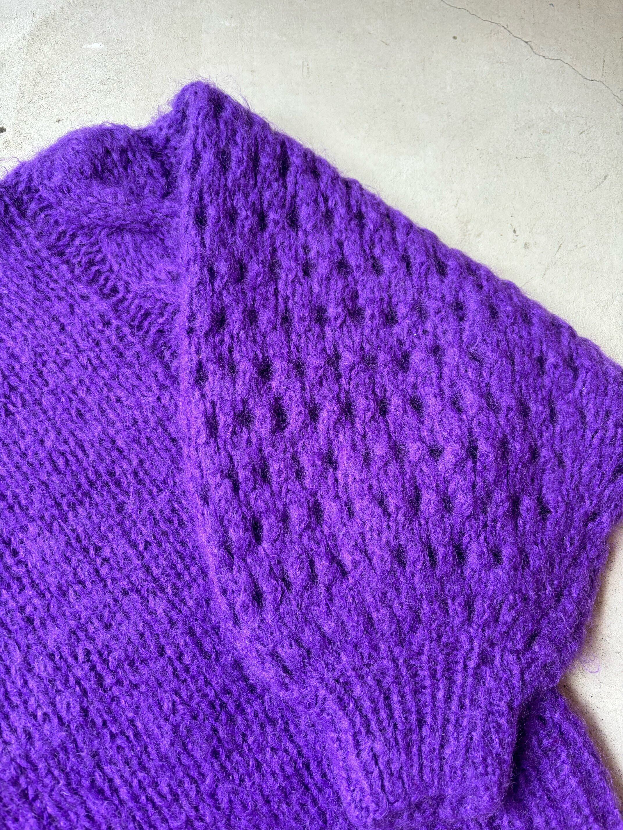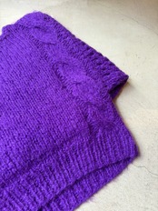 とても発色の良いパープルが綺麗です。完全に1点もののニットになります。