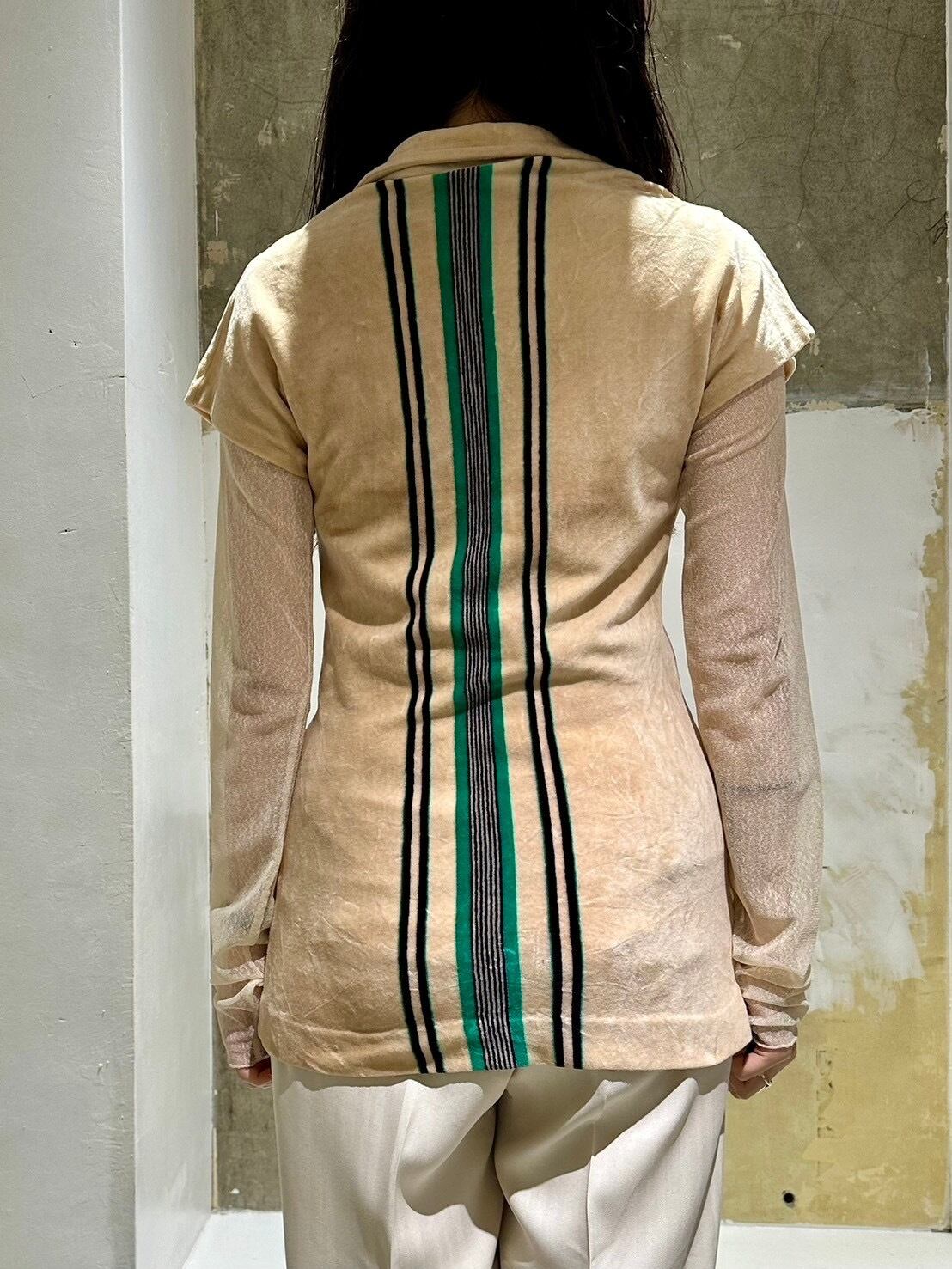 70年代のベロアトップスです。フロントの発色の良いグリーンのラインが可愛いです。