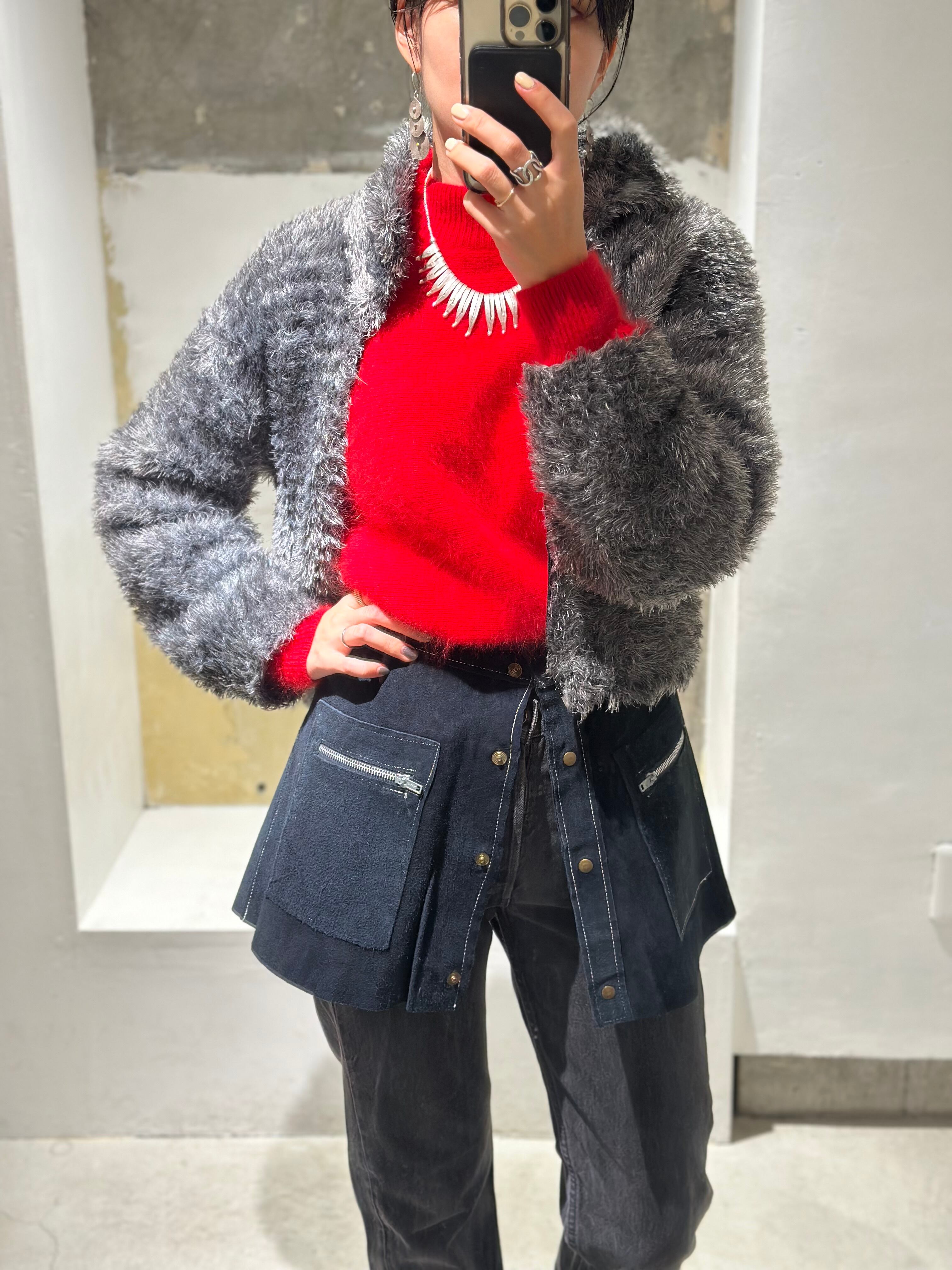 コンパクトなサイズ感のため、ボリュームのあるボトムスを合わせていただいても良いですし、ミニ丈ボトムスにロングブーツも可愛いと思います。