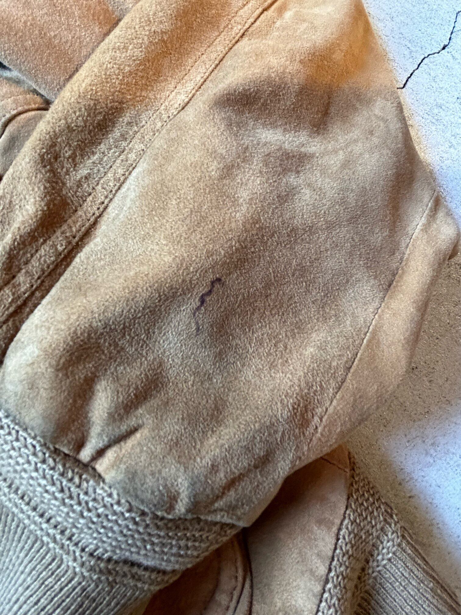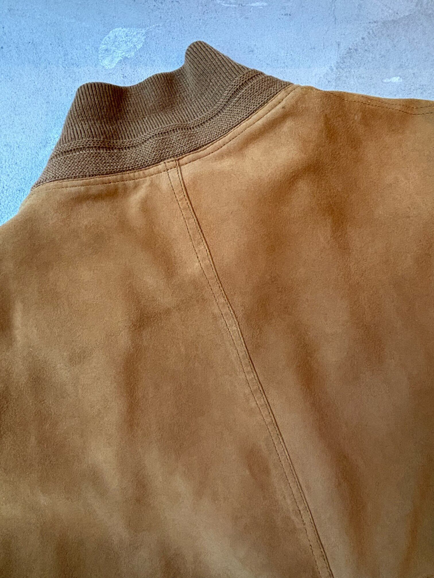 高級なゴートスキンスエードで作られたジャケットは定価で買うと20万はするので古着屋さんで見つけた状態の良いものはかなりお得かと思います。