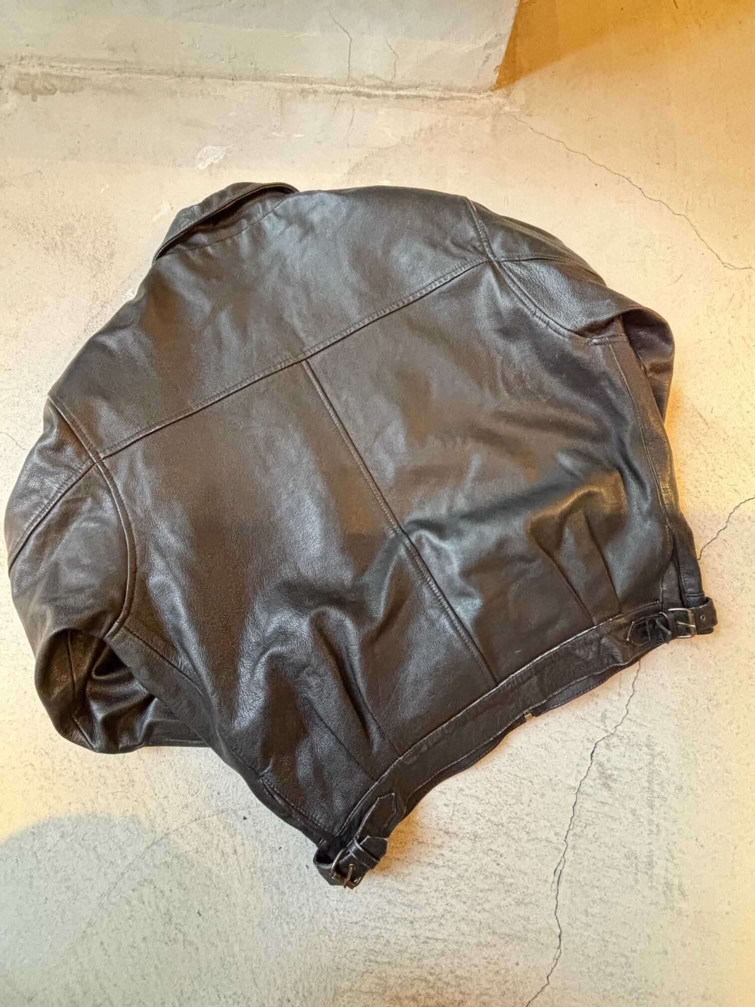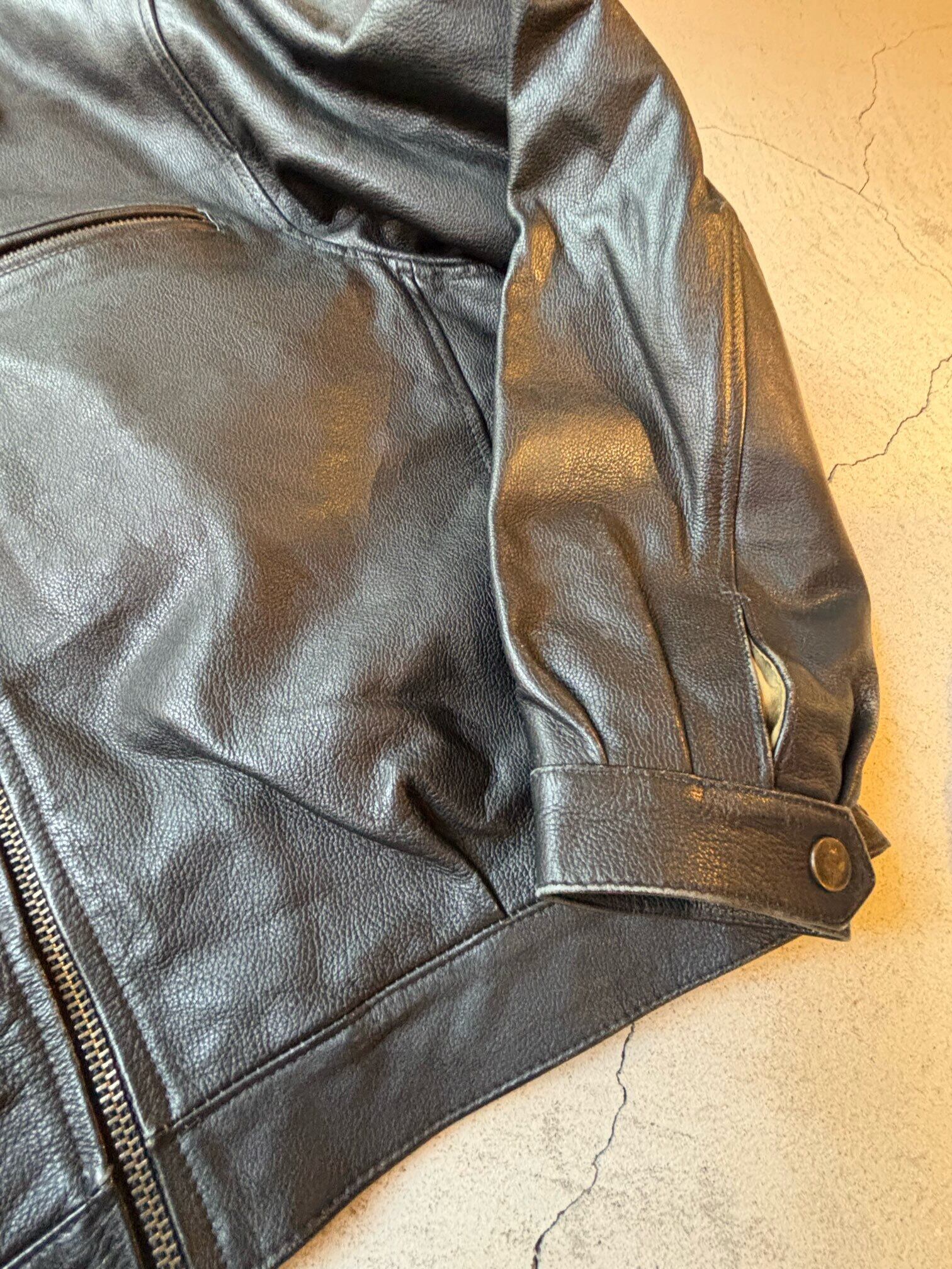80年代頃のレザーブルゾンです。薄く肩パッドが入りますが、着ていても全く肩が張る感じはありません。