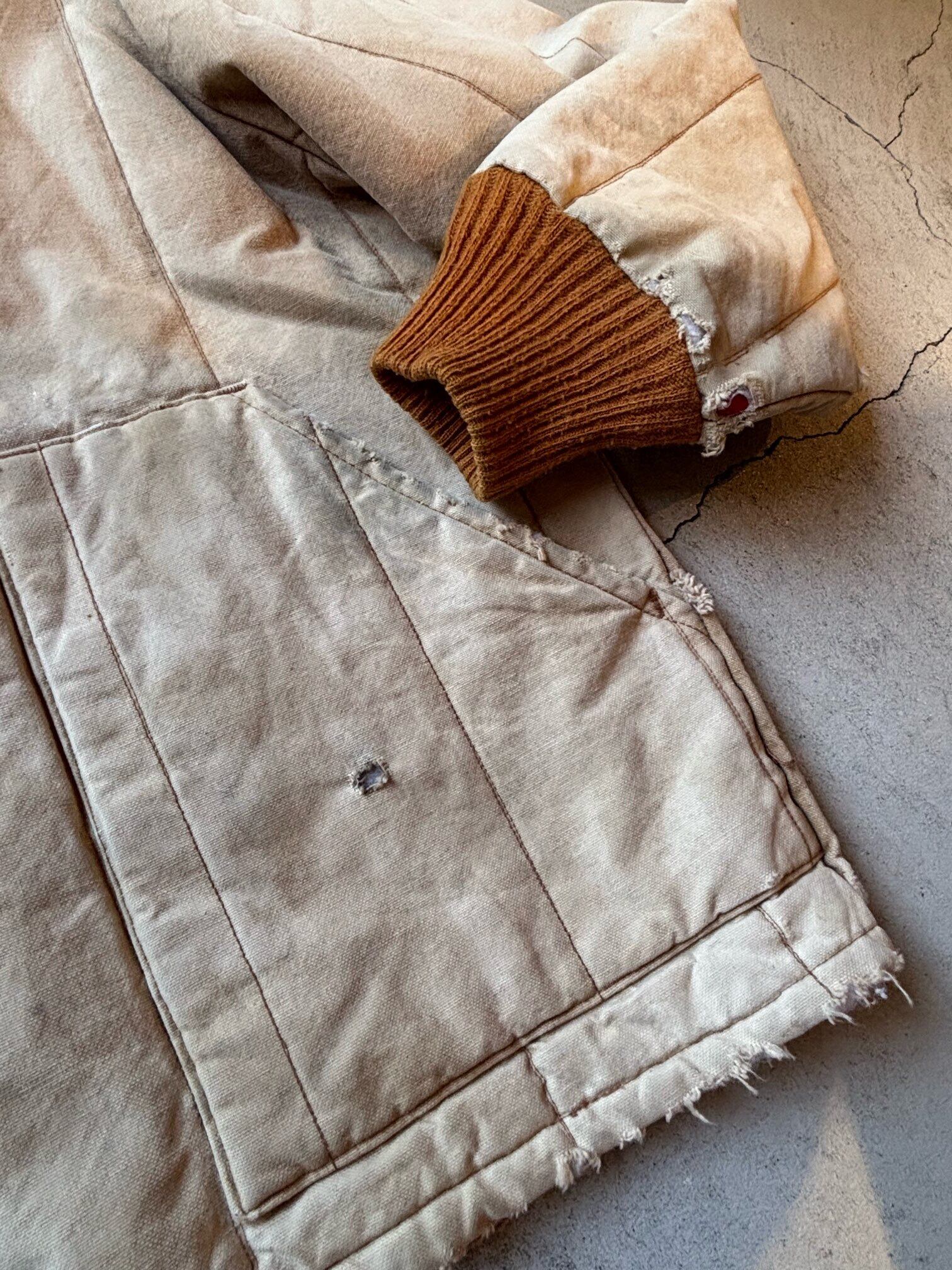 元の持ち主さんがきっとガンガン着まくってくれたおかげで、各所に破れや汚れ、日焼けによるフェードなどvintage好きには堪らないダメージが盛りだくさんのアイテムです。