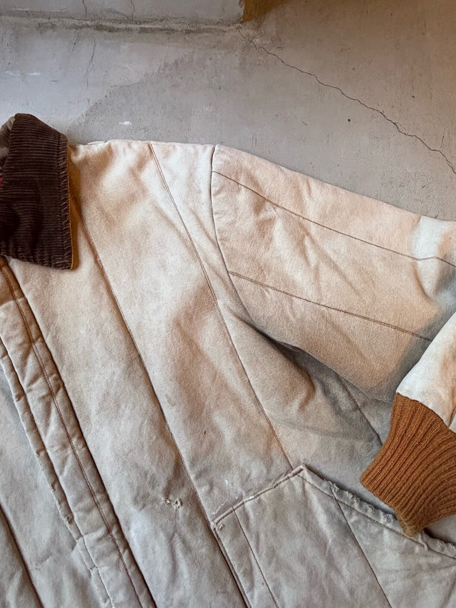 襟コーデュロイ、ボディーはコットンのダック、インナーにはキルティングが貼られていて、ザ、アメリカンワークウエアなディテールです。