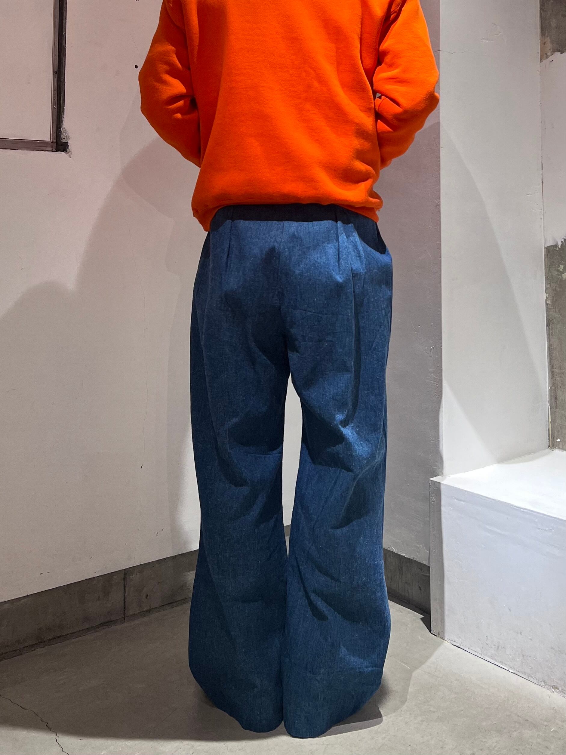 モチーフは海軍のセーラーパンツで、70s特有のバッドダイデニムなので洗っても色落ちしにくいかと思います。