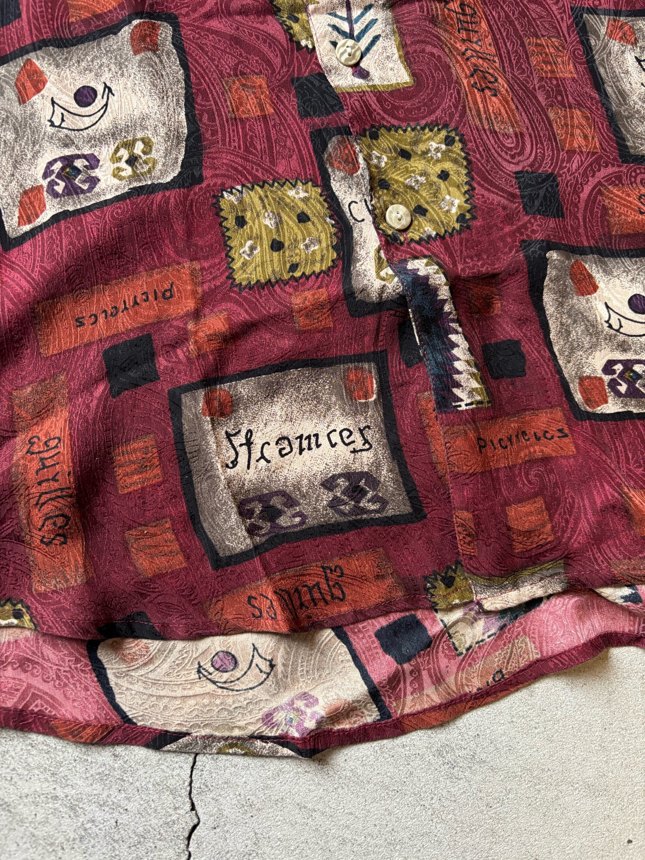 80's goouch silk art pattern shirt